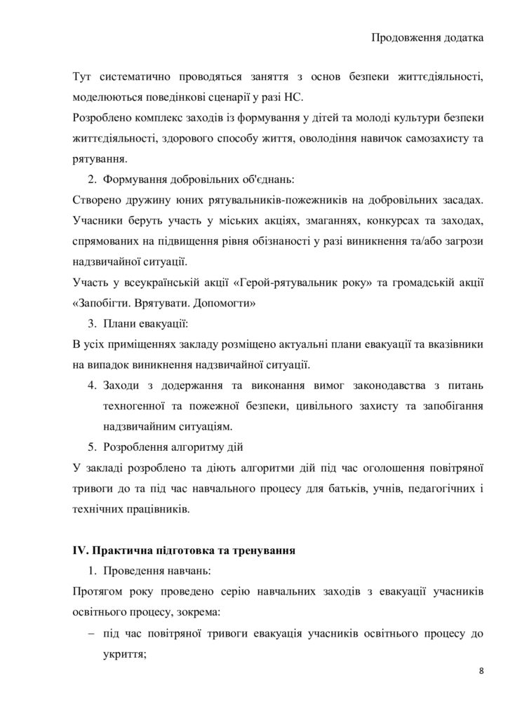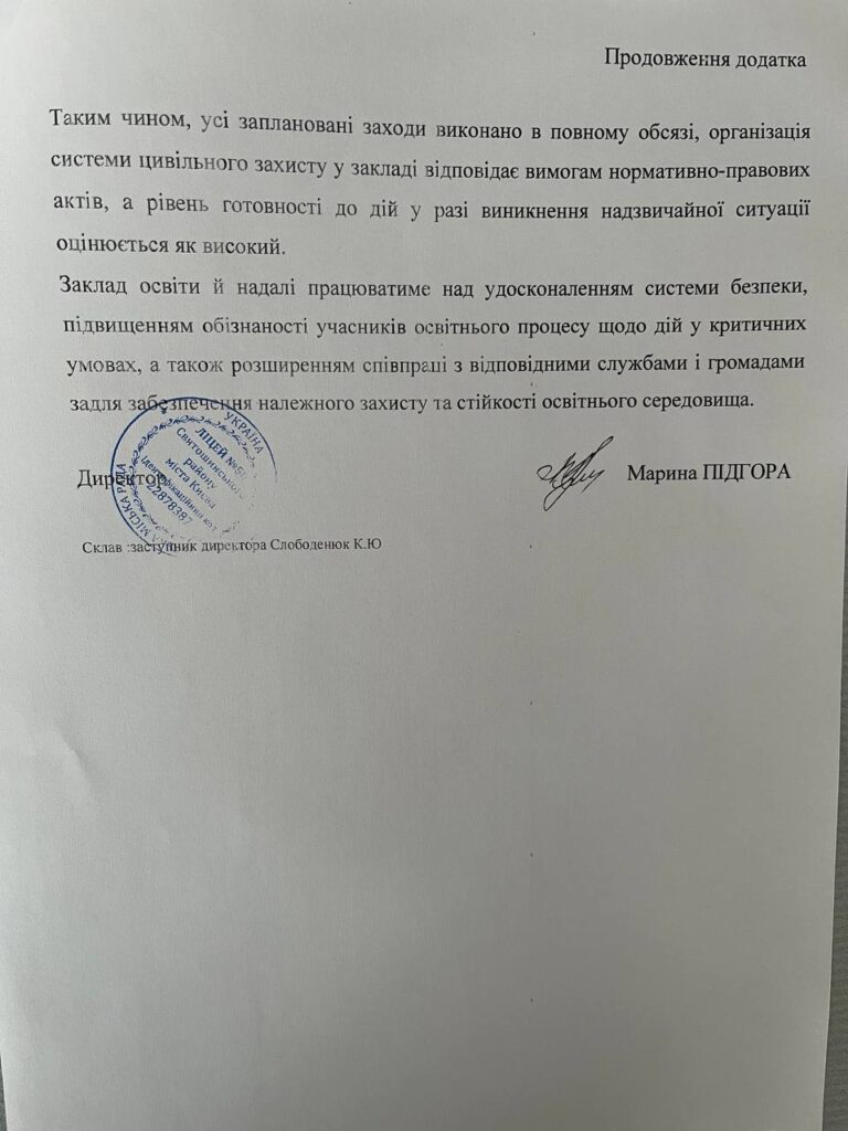 На нашу думку, навчальні тренування дуже важливі. Окрім евакуації варто навчати дітей і поведінці порядку дій у різноманітних надзвичайних ситуаціях.