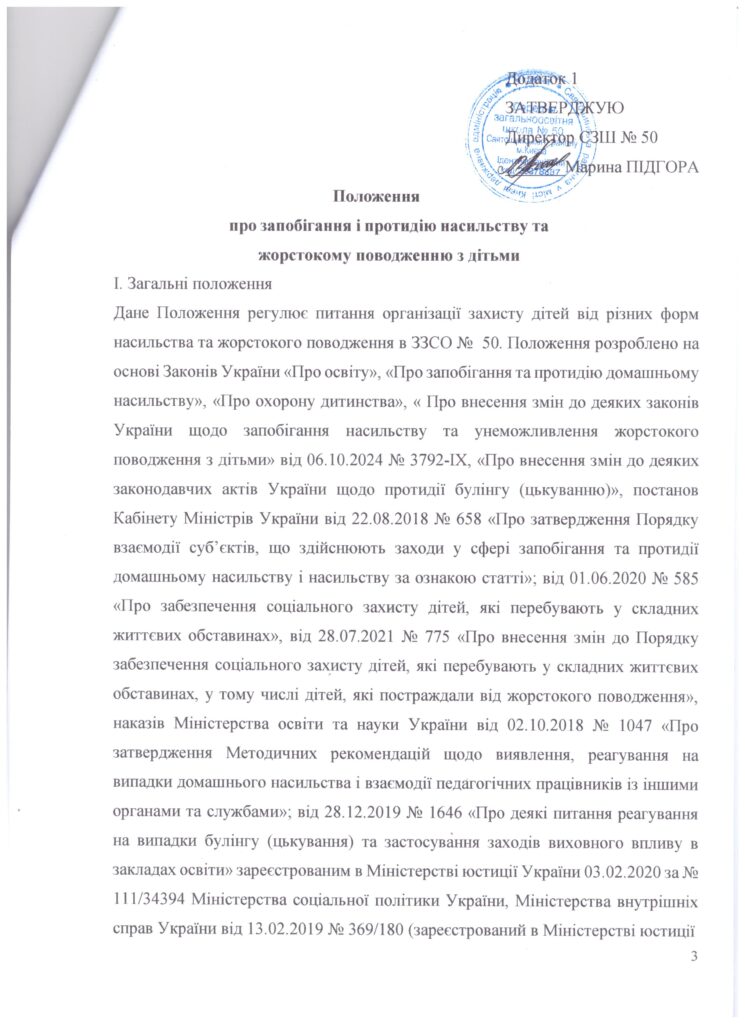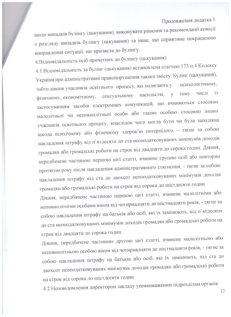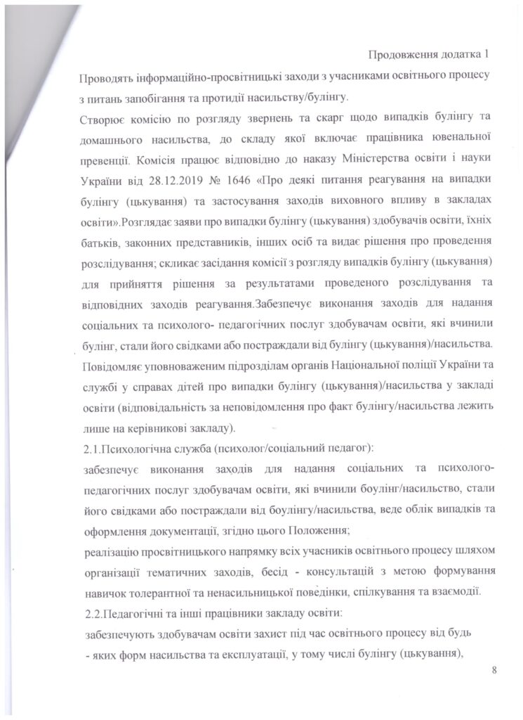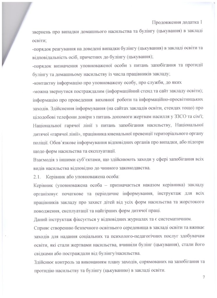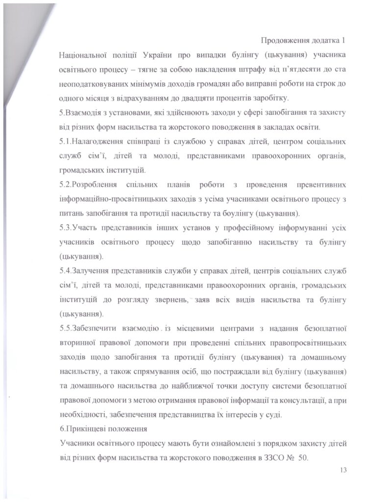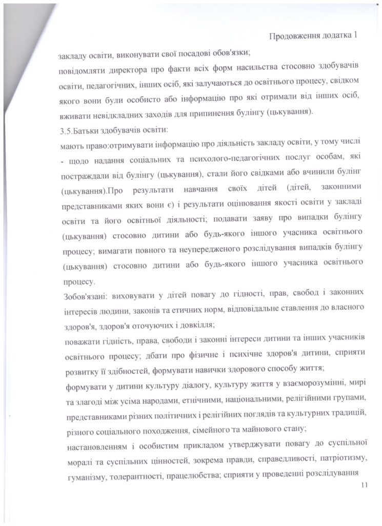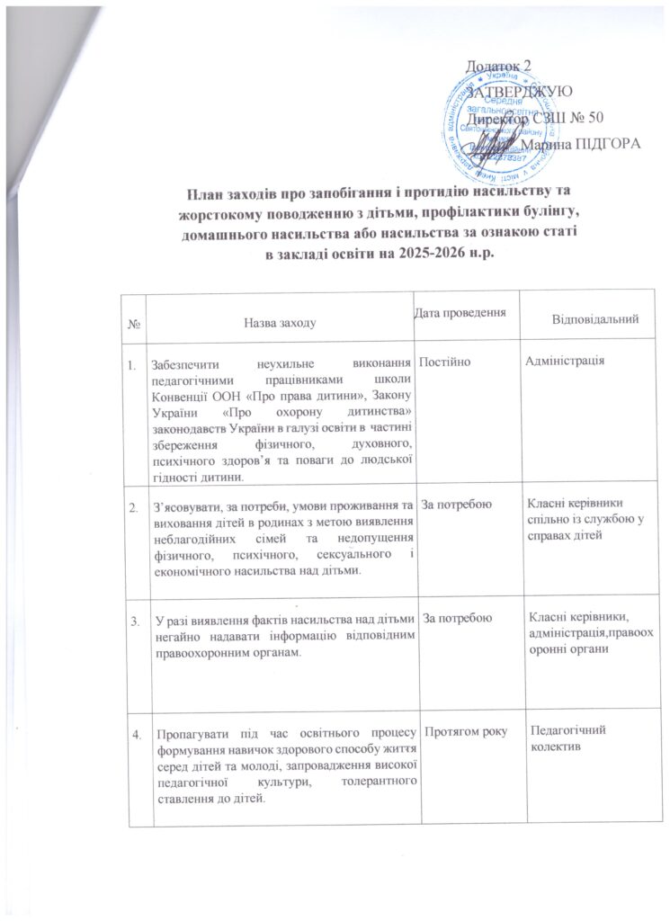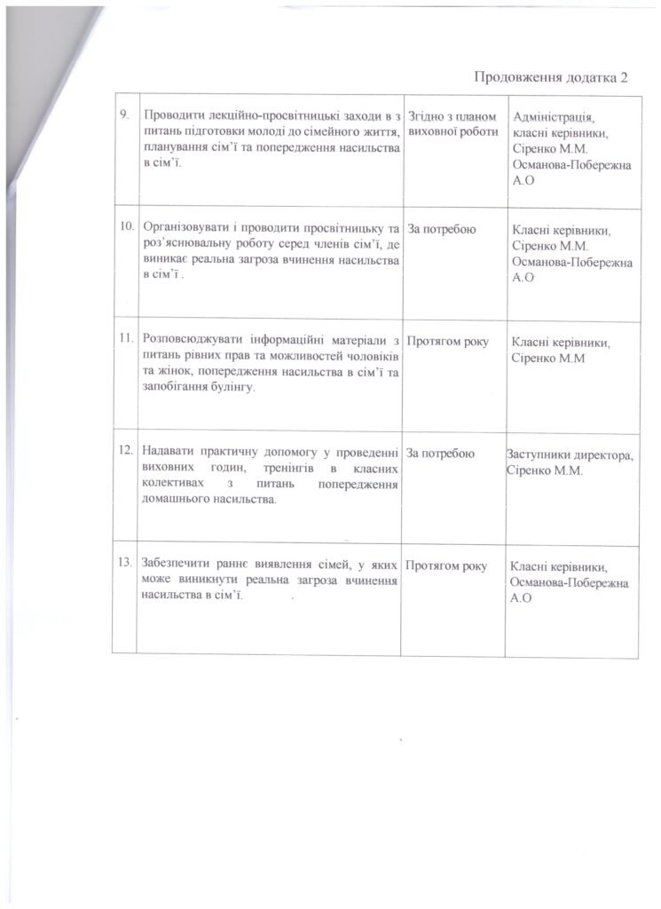 | 1 | Зустріч зі шкільним офіцером поліції на тему «Булінг» | вересень-жовтень | Педагог-організатор |