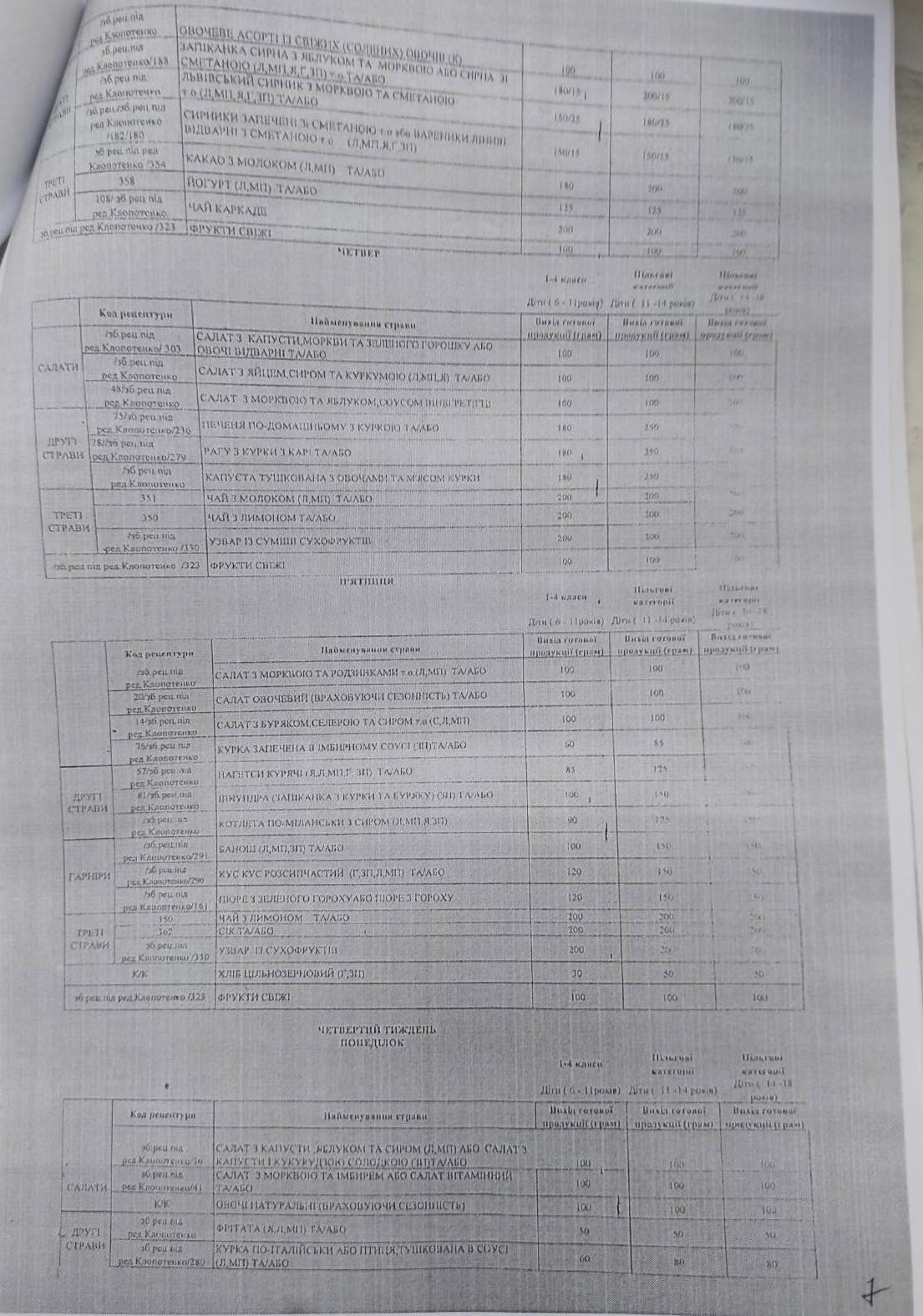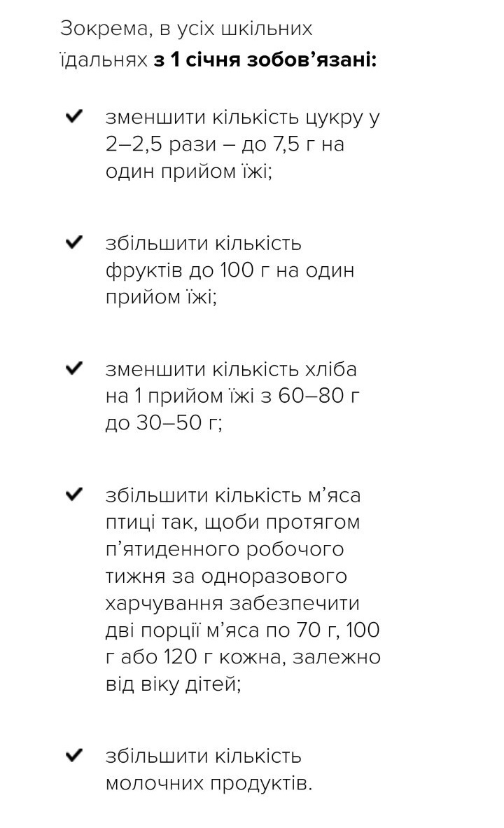 Окрім того, в межах реформи системи харчування з 10 січня запроваджено чотиритижневе меню.