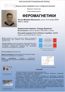 Учень Клічук Михайло представив роботу на тему «Феромагнетики»