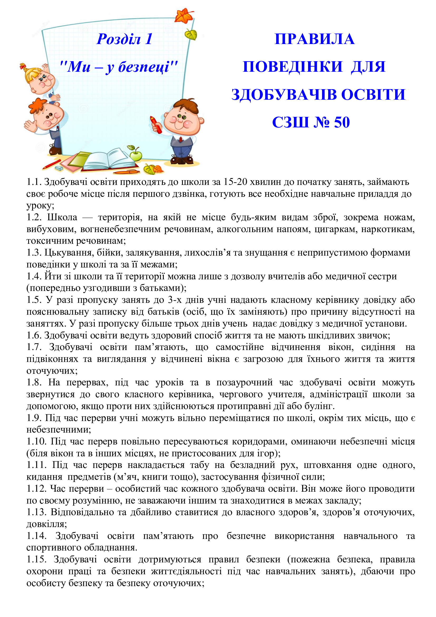 Правила внутрішнього розпорядку для учасників освітнього процесу