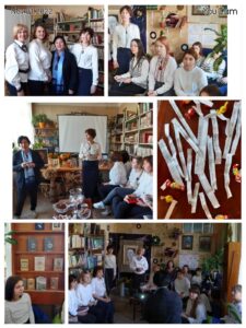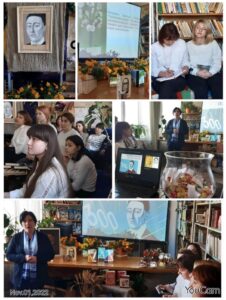 Зустріч колективу школи з Пелешенко Наталією Іванівною, кандидатом філологічних наук, старшим викладачем кафедри літературознавства Національного університету «Києво-Могилянська академія» у контексті відзначення 300-річчя з дня народження видатного українського письменника та філософа Григорія Сковороди. Затишна атмосфера, занурення в сутність влучних, змістовних афоризмім та висловів великої людини. Гортаємо сторінки історії, історії нашого народу, історії наших діячів, крокуймо разом до виборювання права на життя, мир, справедливість.