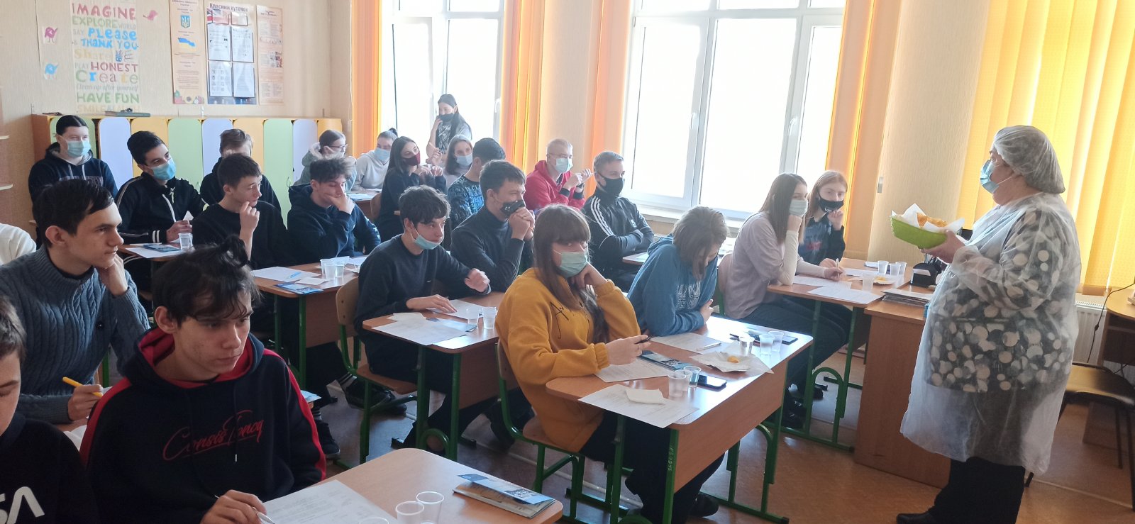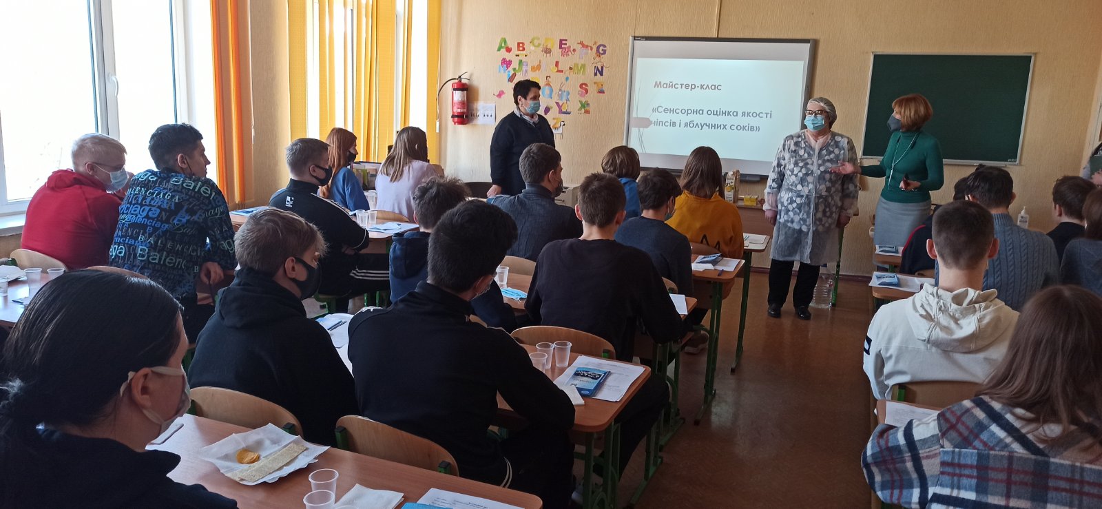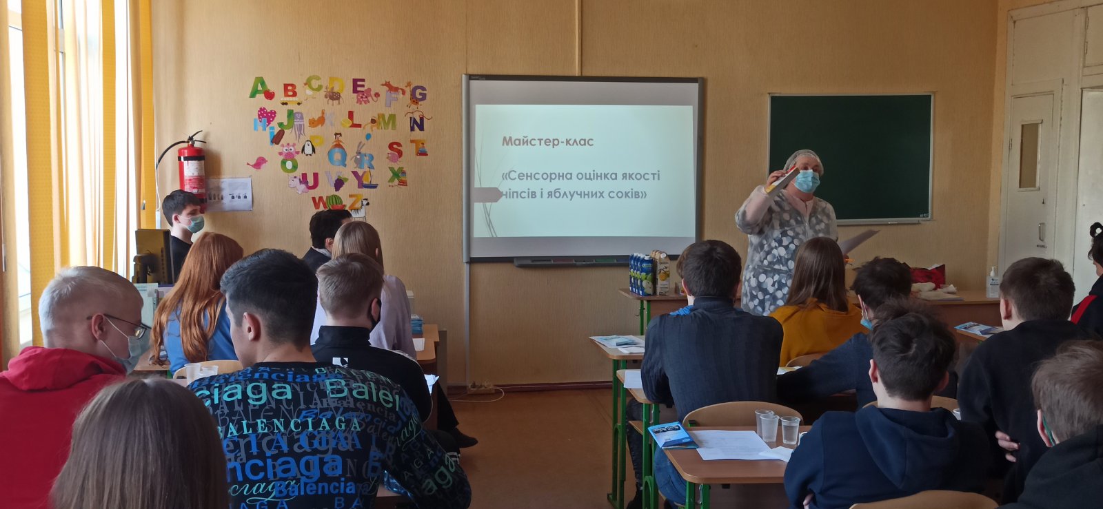 Для старшокласників проведено майстер-клас «Сенсорна оцінка якості чіпсів і яблучних соків».