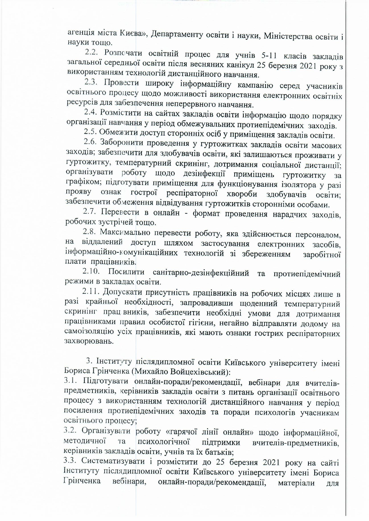 З 20.03.2021 року заборонено відвідування закладу здобувачам освіти 5-11 класів. Учні початкової школи (1-4 класи) навчатимуться очно, у школі (наказ Департаменту освіти від 19. 03.2021 року № 47, п.1).