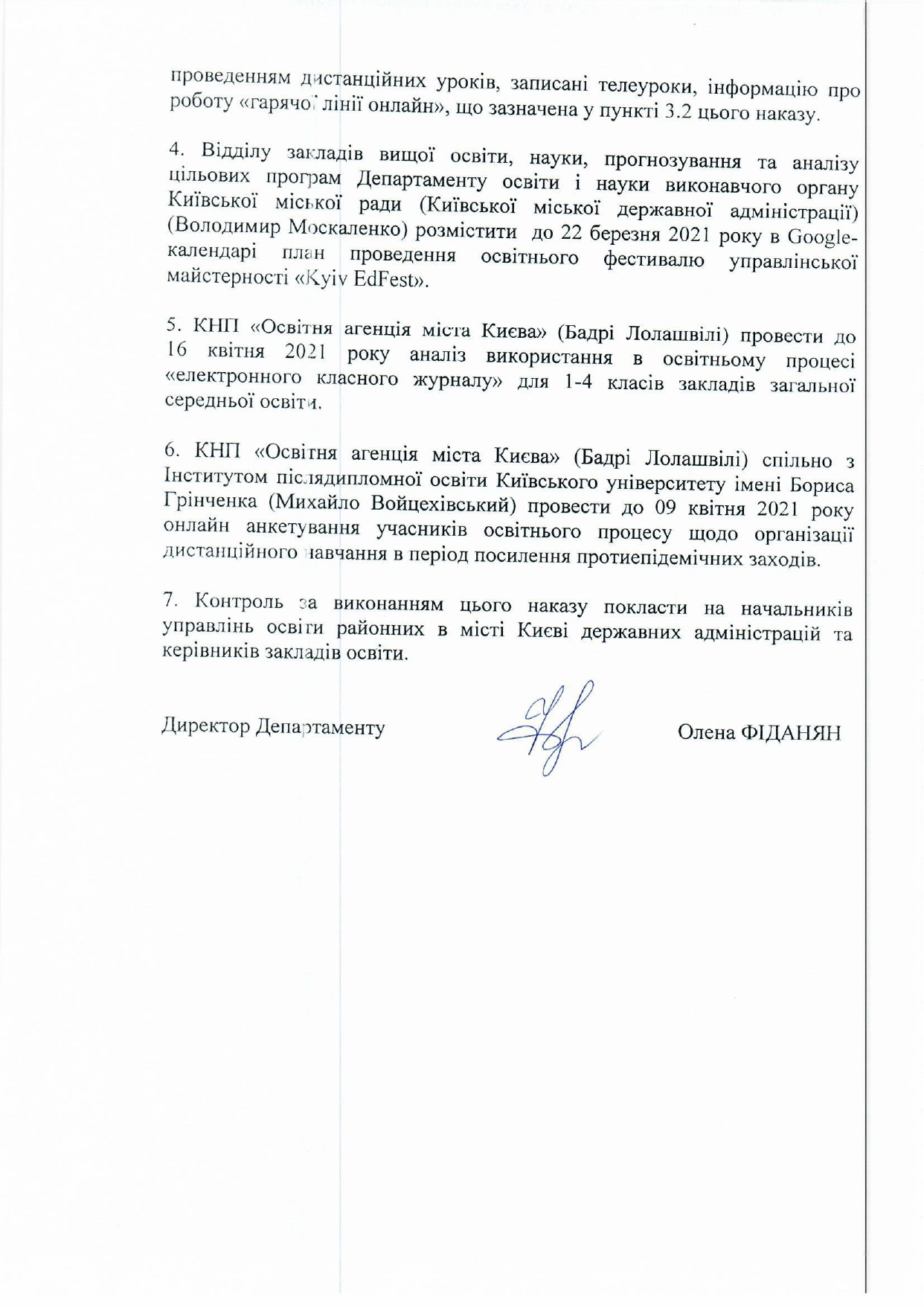 25.03.2021року, четвер, для учні 5-11 класів розпочинається освітній процес із використанням технологій дистанційного навчання (наказ Департаменту освіти від 19. 03.2021 року № 47, п.2.2).