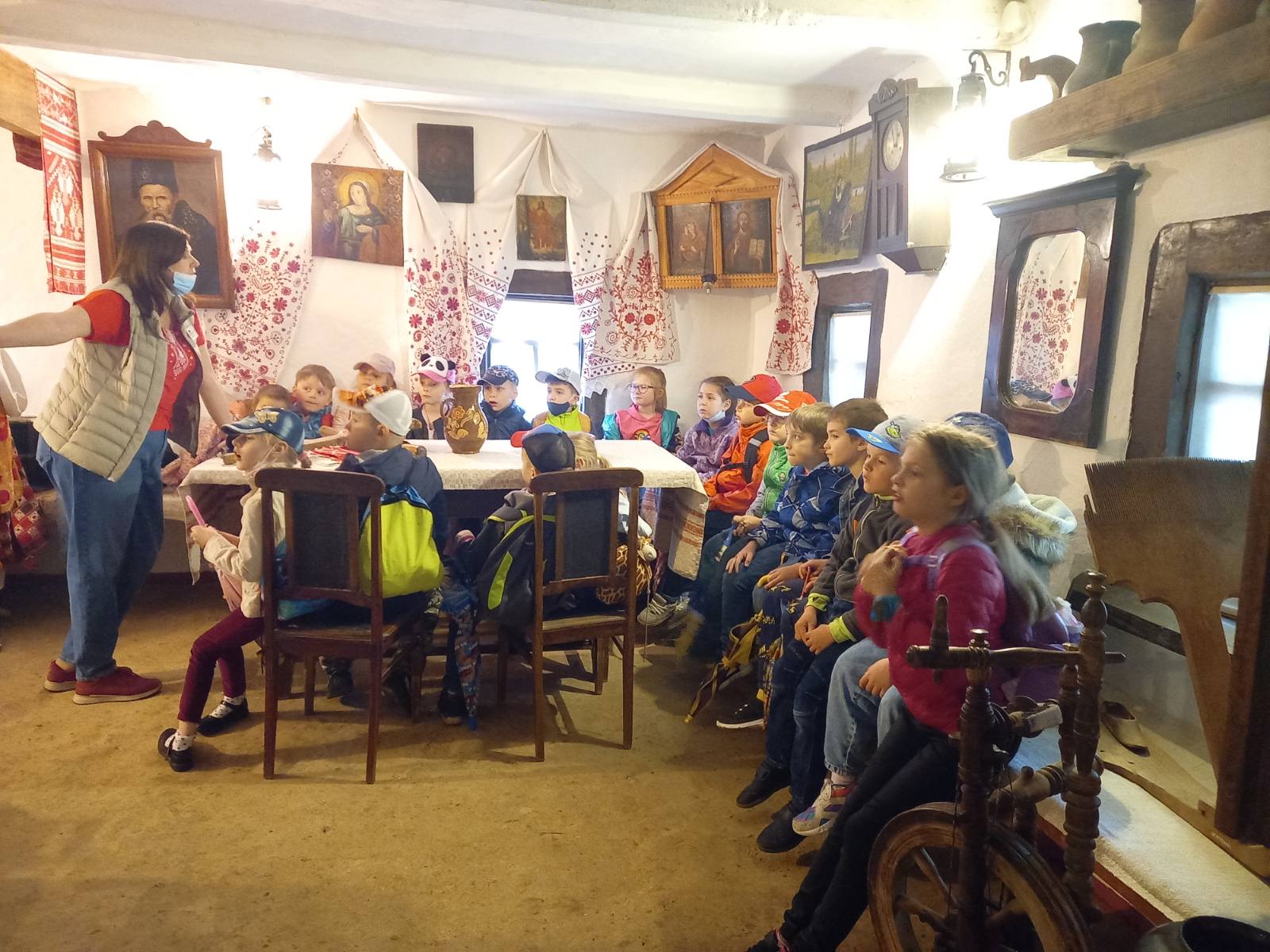 Екскурсія по етнографічному комплексу «Українське село». Учні 1-а та 1-в класів познайомились із старовинними хатками з солом’яною стріхою, кузнею та гончарнею,. Побували у міні-зоопарку та відпочили на лоні чудового лісу. Отримали море позитивного настрою!