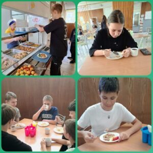 Смачно! Естетично! А головне-корисно! Саме під таким гаслом школа працює в напрямку надання харчування здобувачам освіти. Ми розуміємо, що забезпечення здорового харчування в школі може покращити фізичне та психологічне здоров’я учнів і сприяти їхньому успішному навчанню. Діти отримують різноманітну їжу, яка включає фрукти, овочі, злаки та білкові продукти. Шкільна їдальня пропонує дітям за вибором страви, багаті білками, вуглеводами, вітамінами та мінералами, які так необхідні для дитячого нормального росту та розвитку. Працівники шкільної їдальні знають, що достатня кількість поживних речовин і правильна культура споживання їжі не лише вберігають дитину від численних хвороб, а й роблять її бадьорішою і уважнішою. Тому максимально забезпечують здорове та раціональне харчування для вихованців. Також велике значення має оформлення страв! Шкільний кухар переконаний: естетичне подання страви сприяє збудженню апетиту, приносить естетичну насолоду, впливає на настрій наших маленьких та дорослих дітей.
