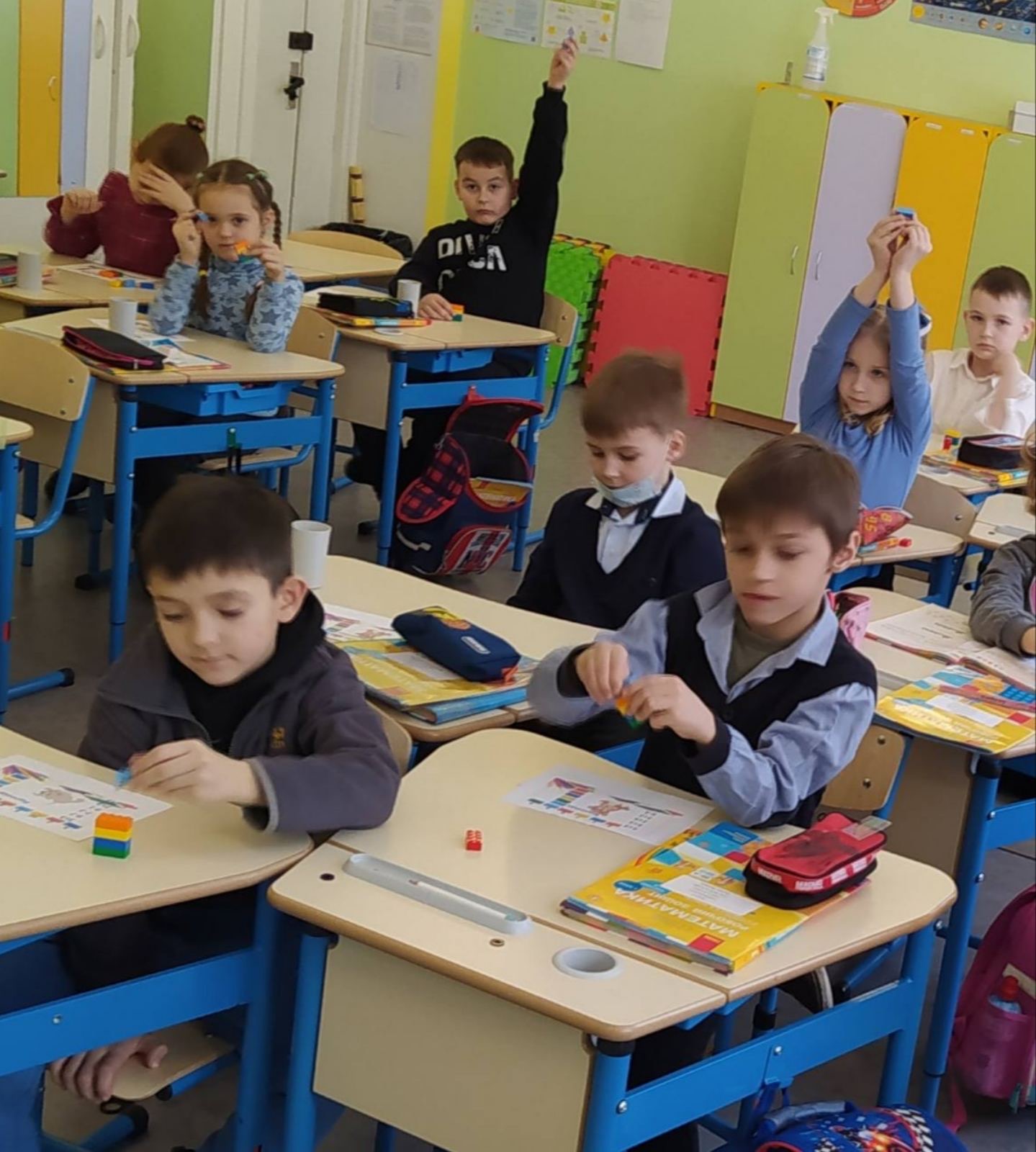 Учні 1-А класу вчаться будувати відрізки, визначають арифметичні дії, знаходять значення рівностей , будують вежі, використовуючи Lego, розвивають критичне мислення та математичні компетентності.