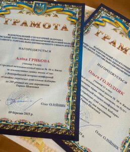 9 березня учениця 9-А класу Грибова Аліна та учениця 11-А класу Голодняк Ольга долучились до Всеукраїнської інтернет-конференції «Єднаймо українські душі словом Кобзаря» до 209 річниці від Дня народження Тараса Шевченка.
