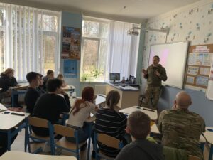 Для випускників нашої школи, було проведено зустріч із інструкторами відділення рекрутингу та комплектування Святошинського районного ТЦК та СП м. Києва щодо умов та правил вступу до закладів фахової передвищої військової освіти, вищих військових навчальних закладів, військових навчальних підрозділів закладів вищої освіти Міністерства оборони України.