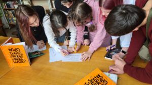 Бібліотекарка, пані Вероніка, занурилась в тиждень математики, котрий триває в нашій школі 50, та підготувала повчально-пізнавальну виставку книжок і прийняла дітей в бібліотеці на квест, підготовлений вчителькою математики Галиною Василіївною. Ставлячи логічно-математичні питання, поєднані з читанням та висловами відомих педагогічних авторів, учні проходили математмчний та літературний квест. Дуже цікаво та дуже корисно.
