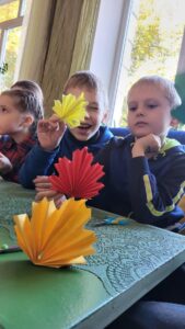 До бібліотеки нашої рідної школи 50 залетів кленовий листочок. Зустрітися з ним прийшли діти 2-Б класу. Захоплені розповіддю бібліотекарки пані Оксани, учні читали цікаві розповіді про золоту осінь, фантазували про пориви листочків у час, коли вітер і в час, коли тиша, та робили яскраві кленові листочки, у кожного з яких своя особиста історія, бо саме хлопці і дівчата її написали.