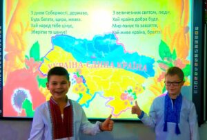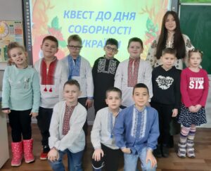 Учні 3-Б класу також долучилися до святкування цього важливого дня. У межах урочистих заходів вони підготували тематичні виступи та взяли участь у символічному флешмобі, демонструючи національну єдність через спільні дії.