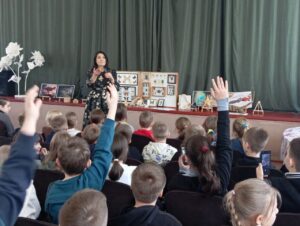 Сьогодні учні 1-6 класів поринули у дивовижний світ природи та історії. Вони не лише побачили артефакти старовини, а й змогли доторкнутися до справжніх зубів і кігтів доісторичних тварин! Діти були в захваті від можливості відчути зв’язок із минулим та дізнатися більше про життя на Землі мільйони років тому, а саме про: підземне царство, різноманітні мінерали; підводне царство.Побачити справжні щелепи акули-бика, зуб Мегалодону, різноманітні види молюсків, корали; царство комах, метеликів, павуків, скорпіонів та багато-багато іншого!