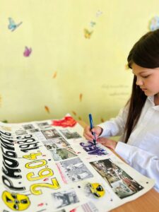 Діти з цікавістю слухали розповідь про мужність і самопожертву людей, які першими стали на захист людства від атомної біди. Під кінець заходу учні разом створили проєкти, присвячені пам’яті трагедії.