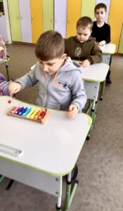 На уроці музики наші першокласники створили справжній дитячий оркестр — із ксилофонів,бубнів,трикутників та сяючих очей. Кожна дитина відчула себе музикантом, а разом вони — командою, що творить диво 💫
