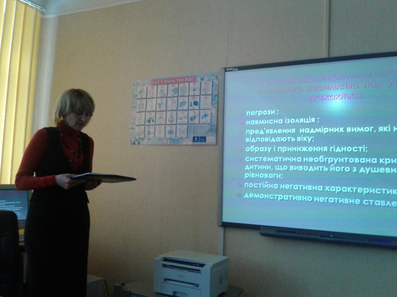 Психолог Марина Миколаївна Сіренко підготувала чудову презентацію та пояснила вчителям поняття «буллінгу», як протистояти буллінгу в дитячих колективах, розтлумачила, що мають знати педагоги, яку допомогу можуть надати батькам та дітям.
