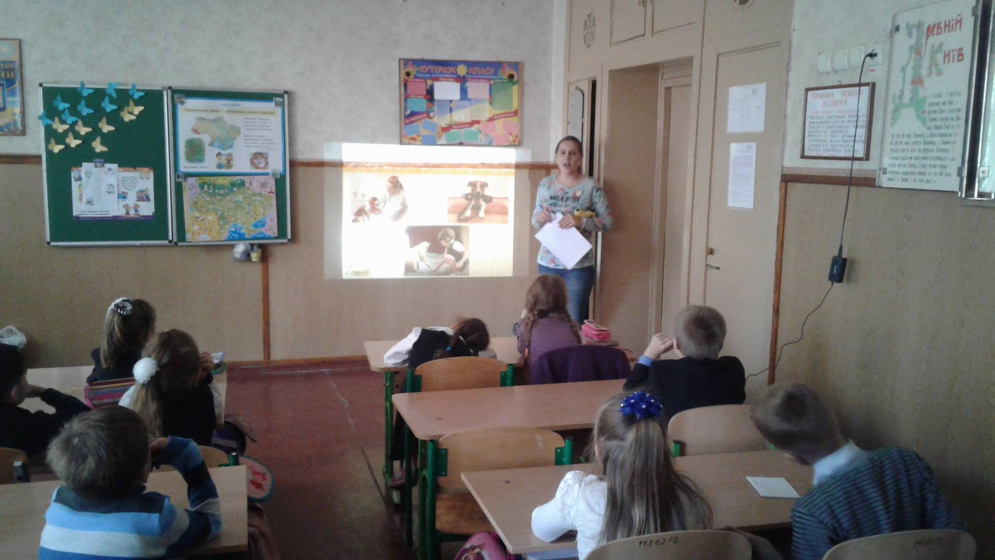 Нещодавно до нашої школи завітав Благодійний Фонд допомоги безпритульним тваринам «Щаслива лапа», одним з напрямків якого є інформаційно-просвітницький проект «Біоетика». У рамках цього проекту спеціалістом з просвітницької роботи Фонду Трикон Юлією В’ячеславівною для учнів нашої початкової школи (1-А, 2-Б, 3-Б, 4-Б класи) проводилися цікаві та корисні інтерактивні заняття про гуманне, відповідальне та дбайливе ставлення до безпритульних собак і котів. Діти отримали практичні поради, як правильно поводитись з безпритульними собаками. Прийшлись до вподоби нашим маленьким школярам яскрава відеопрезентація та повчальна бесіда, під час якої обговорювались основні питання щодо догляду за домашніми улюбленцями, цікаві факти про собак та котів.