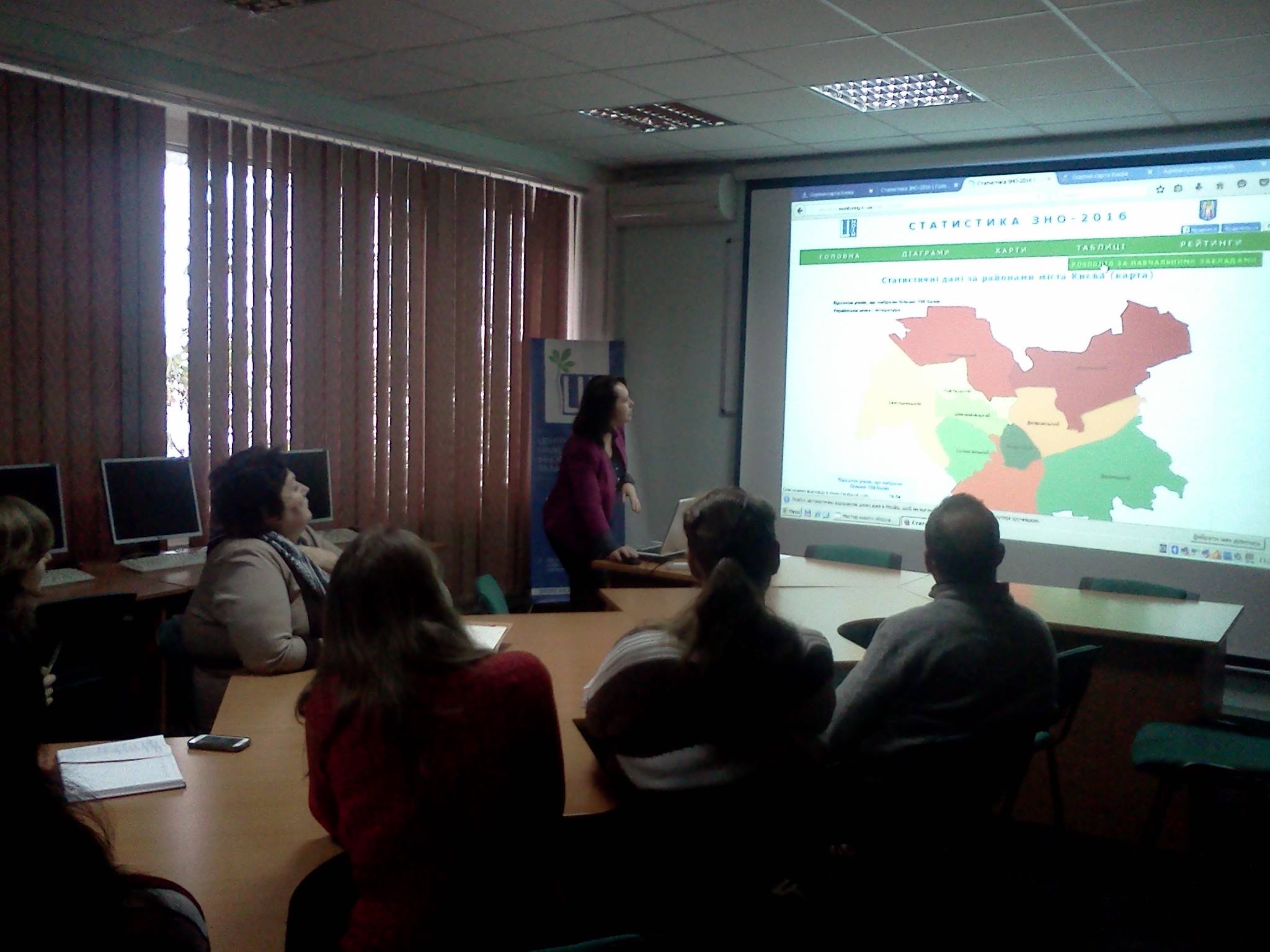 Тематика занять була різноманітною: «Збережемо майбутнє Землі разом», програма АС «Школа», особливості роботи з «Освітньою картою Києва», інтерактивний екскурс «Освітній атлас у роботі ЗНЗ м. Києва», майстер клас «Особливості підготовки учнів до ЗНО з точки зору тестології», «Корнинський метод – 100 років потому. Методика парного навчання в сучасній школі», «Проектна діяльність» та «Магія хімії».