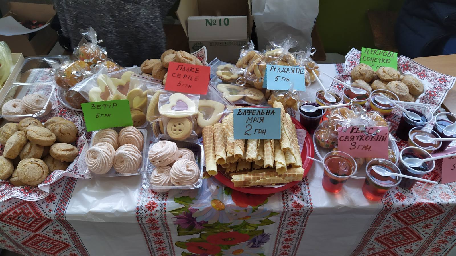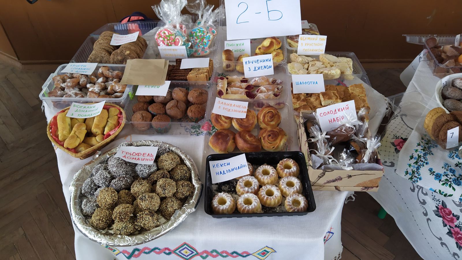 На ярмарку можна було купити за помірними цінами пиріжки, тістечка, печиво, торти, рулети, желе. Атмосфера на солодкому , ярмарку була жвавою і невимушеною. Покупці та продавці створили справжню атмосферу ярмаркового дійства. Домашню випічку з особливим азартом розкуповували маленькі школярики. Така акція припала до вподоби кожному: батьки і діти були залучені до доброї справи, діти посмакували випічкою, а вчителі втішились гарним настроєм своїх учнів.