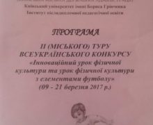 Дякуємо учителю фізичної культури Василенку Сергію Володимировичу, який взяв участь у ІІ (міському) турі Всеукраїнського конкурсу «Інноваційний урок фізичної культури та урок фізичної культури з елементами футболу»! Бажаємо високих досягнень, реалізації планів, творчих злетів!