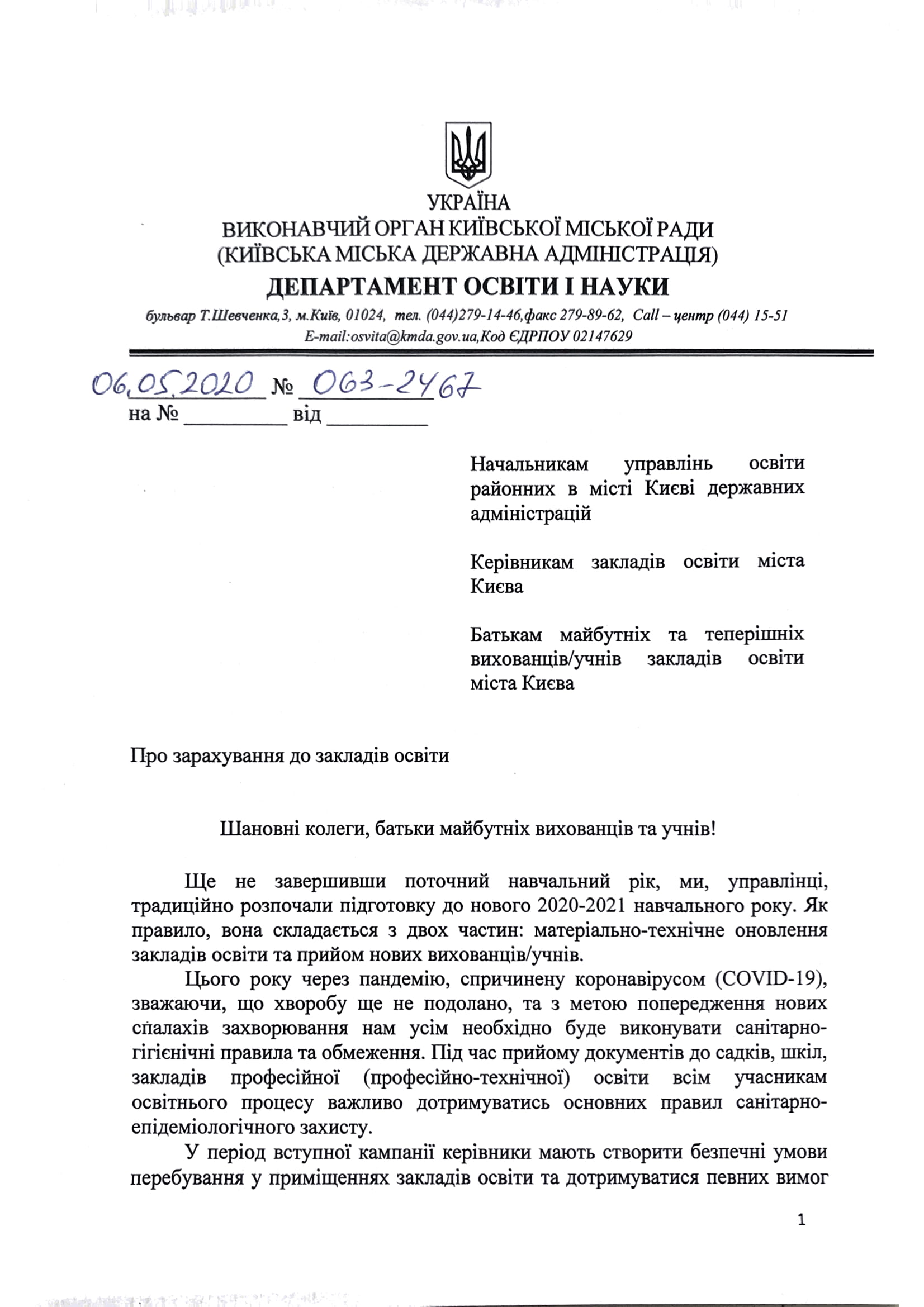 Прийом дітей до 1-х класів 2024-2025 н.р.