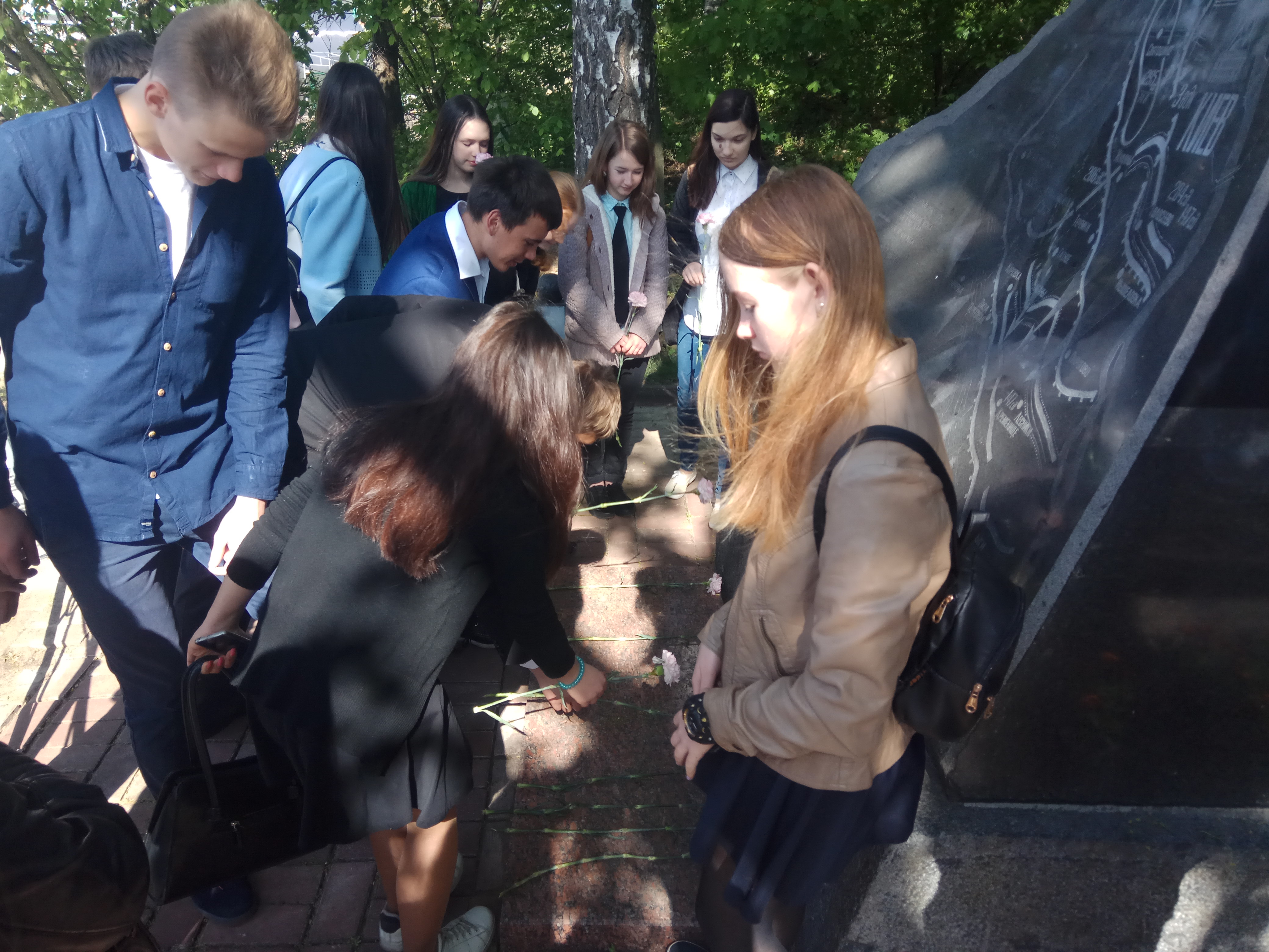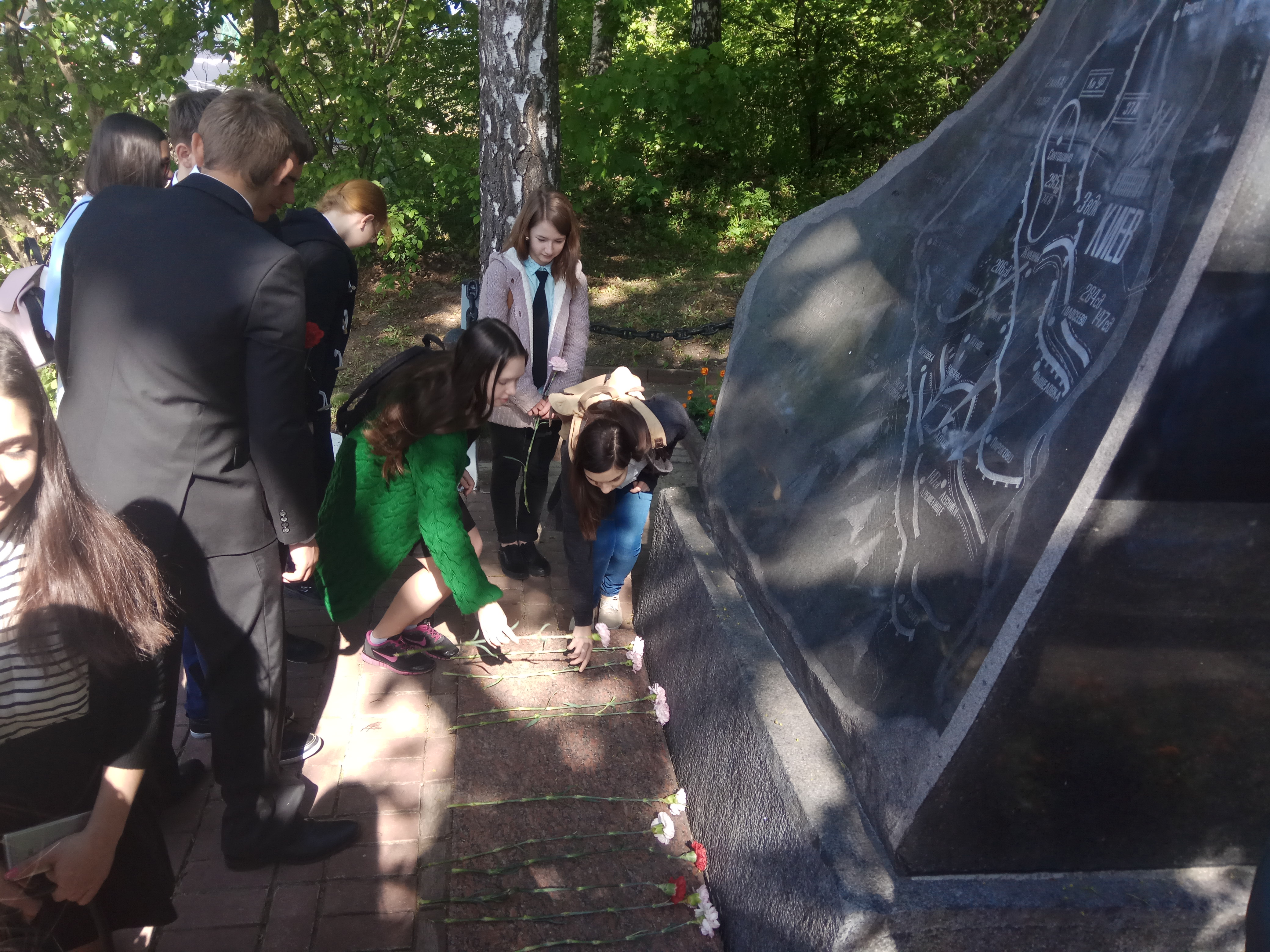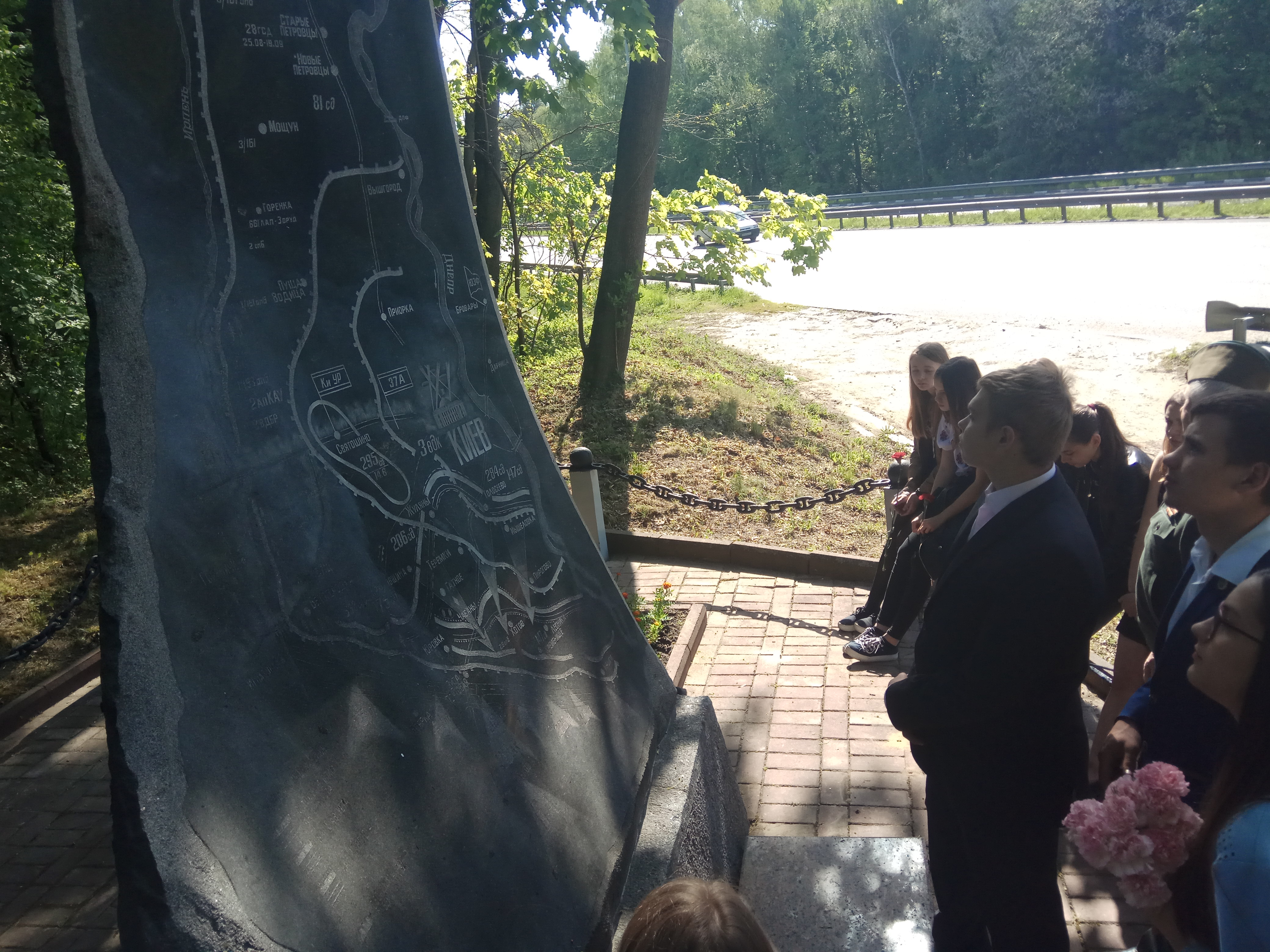 Учні школи № 50 провели мітинг Пам’яті та поклали квіти біля пам’ятного знаку першої лінії оборони (19-ий км Житомирського шосе).