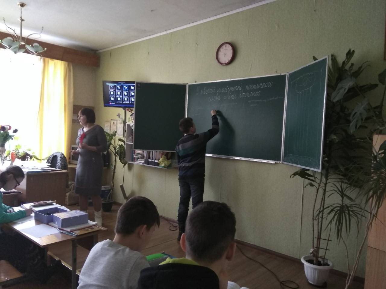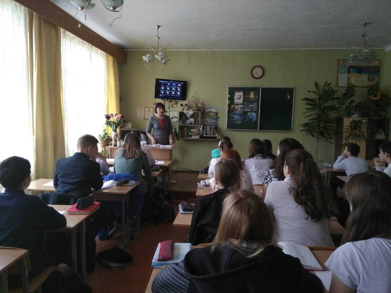 Поезія-це завжди неповторність, якийсь безсмертний дотик до душі. Ці слова Ліни Костенко стали епіграфом відкритого уроку з української літератури у 7-Б класі. Учні працювали у творчій майстерні поетичного слова у ролі письменників, художників, композиторів, літературознавців, ведучих прогнозу погоди, розглядаючи поезію «Дощ полив» Ліни Костенко. Семикласники вчились у поетеси вмінню бачити незвичайне у звичайному, ловити іскорки зірок у дощових калюжах чи визбирувати блискавки в траві із загадковим кропив’яним дідом, а сад розкривав перед ними різнокольорову парасольку і запрошував прогулятись його щедрими стежками, на яких шарудять у траві їжаки і лелека стоїть на одній нозі. Образне слово Ліни Костенко надихнуло, зворушило, викликало глибокі почуття любові до навколишнього світу.