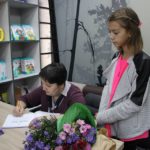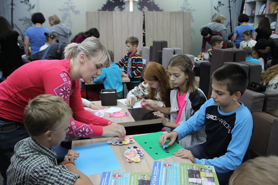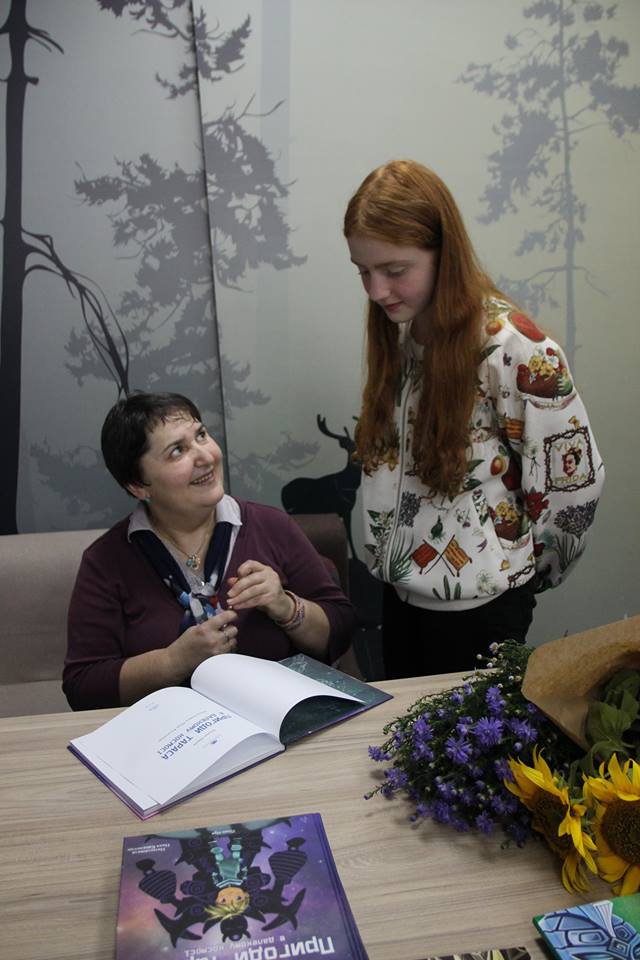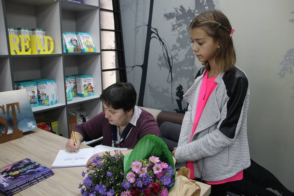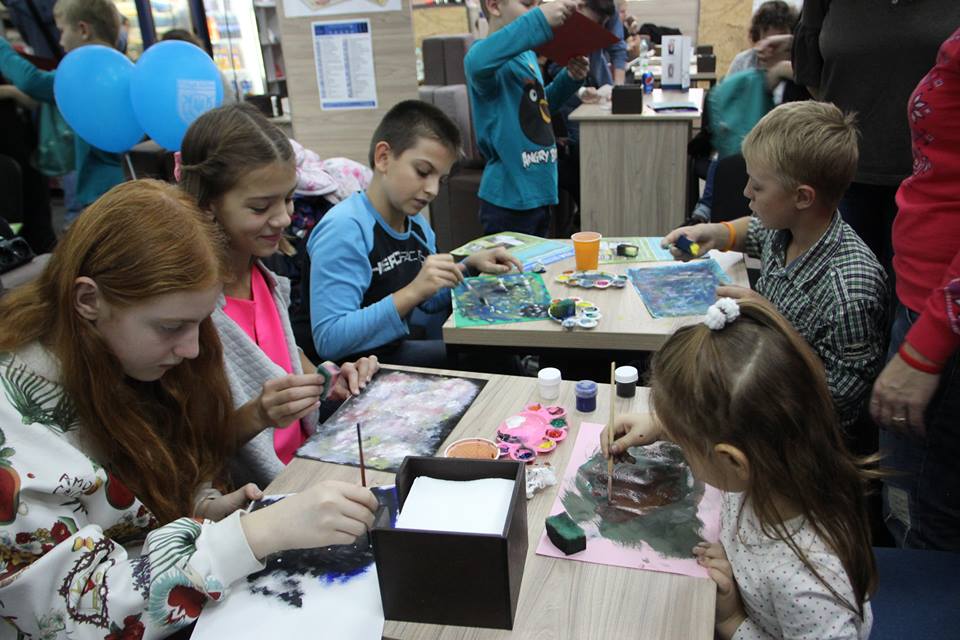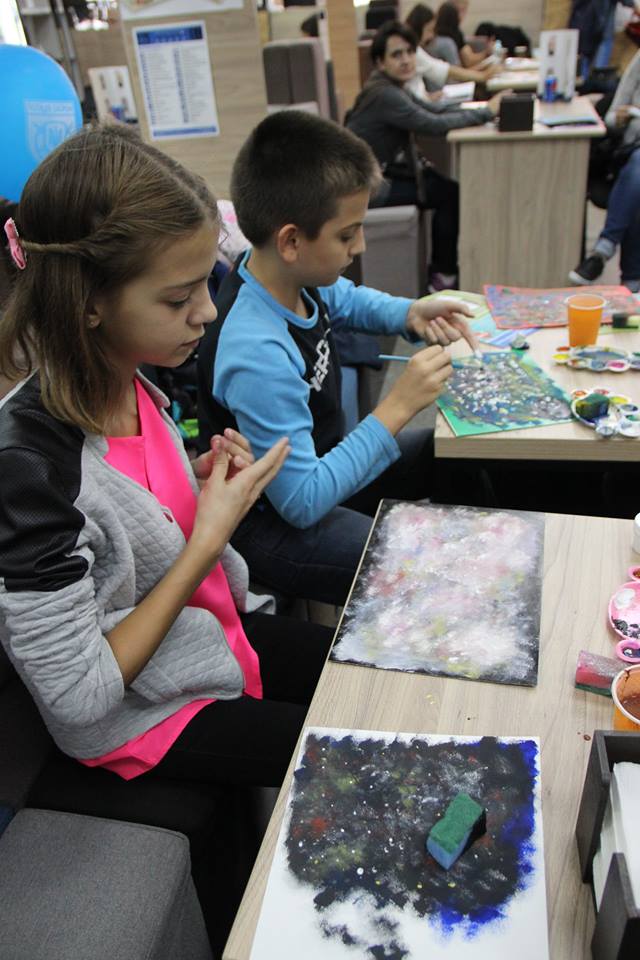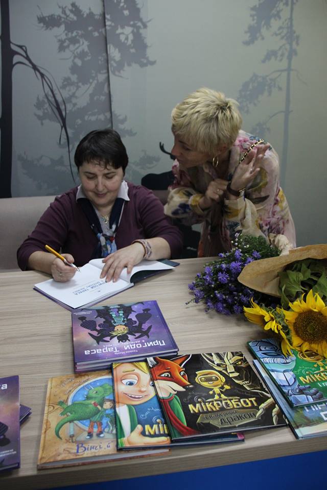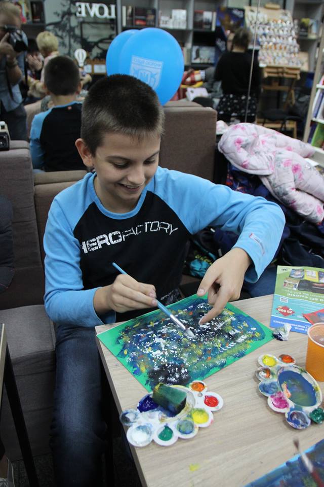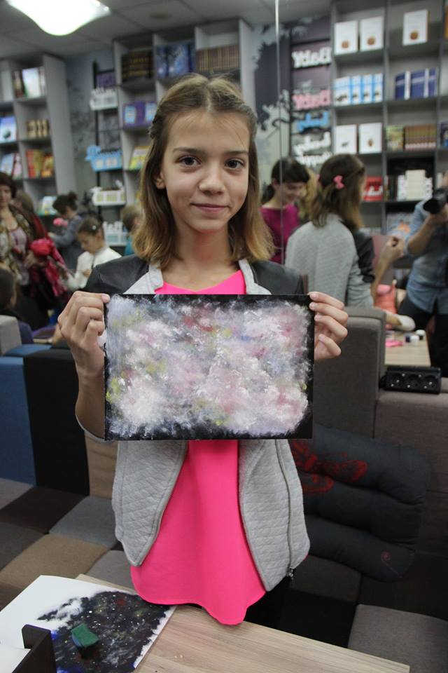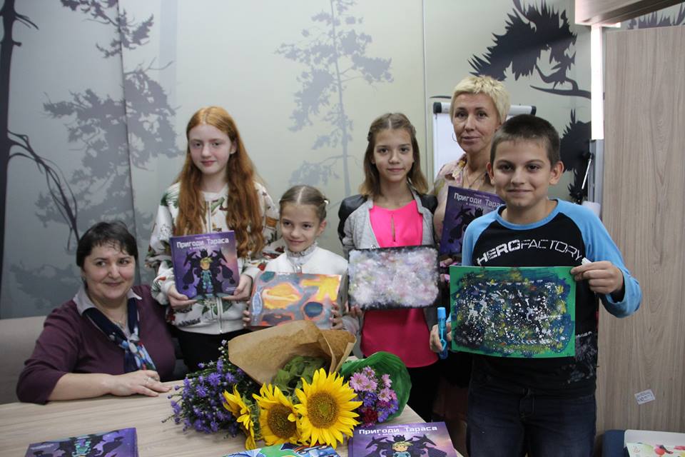23 вересня, діти школи з бібліотекарем та батьками відвідали суперкосмічну презентацію книжки Галини Манів «Пригоди Тараса в далекому космосі», яка відбулася у затишній книгарні «Буква» у центрі столиці. Письменниця Галина Манів була вражена, як багато сучасні діти знають про космос, вони вільно орієнтувалися в космічній темі, ставили чудові запитання на рівні професійних журналістів і, врешті-решт, вони легко опанували техніку малювання губкою на картоні, і зробили прекрасні космічні малюнки, де кожен зміг намалювати всесвіт так, як собі його уявляє:)