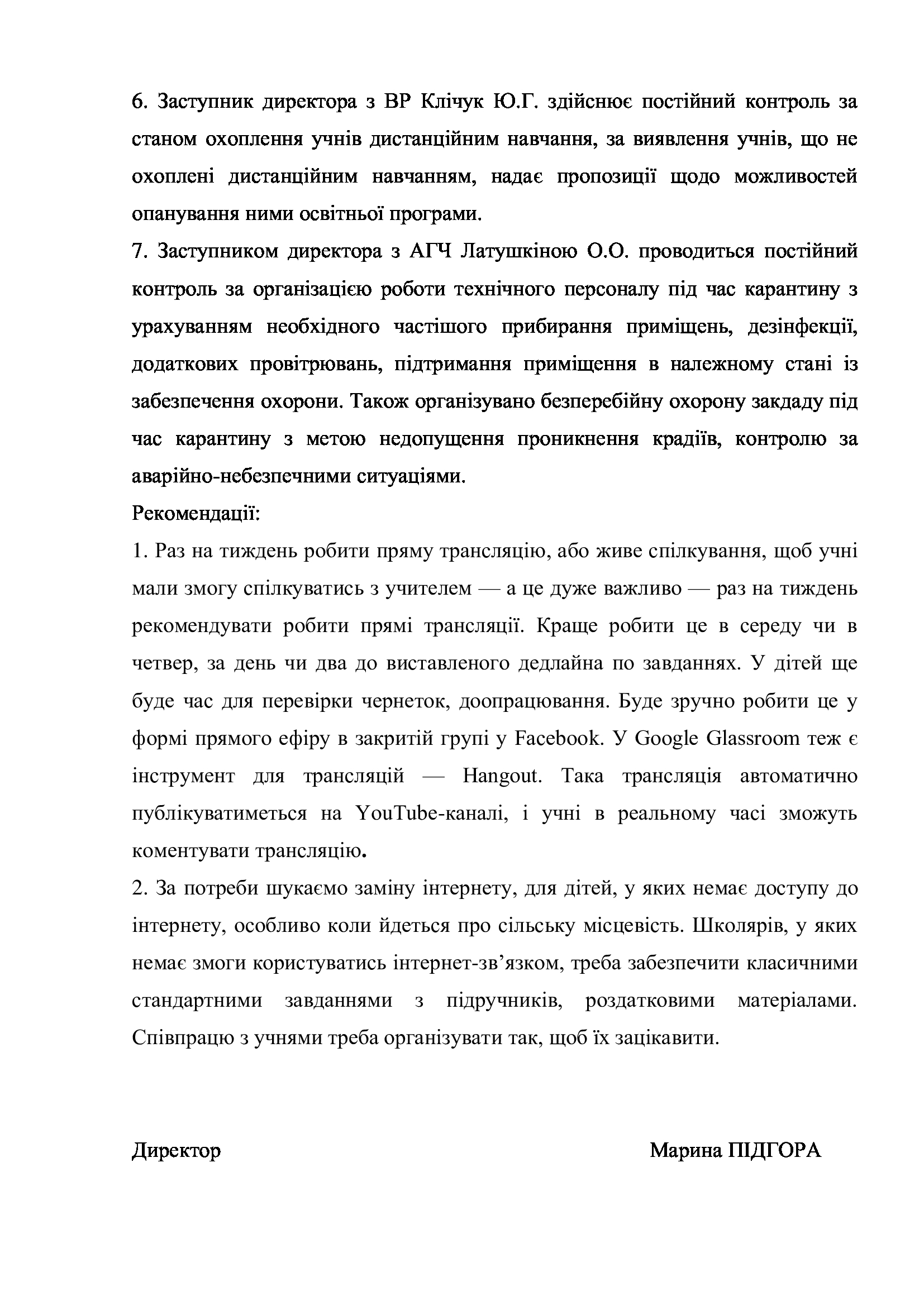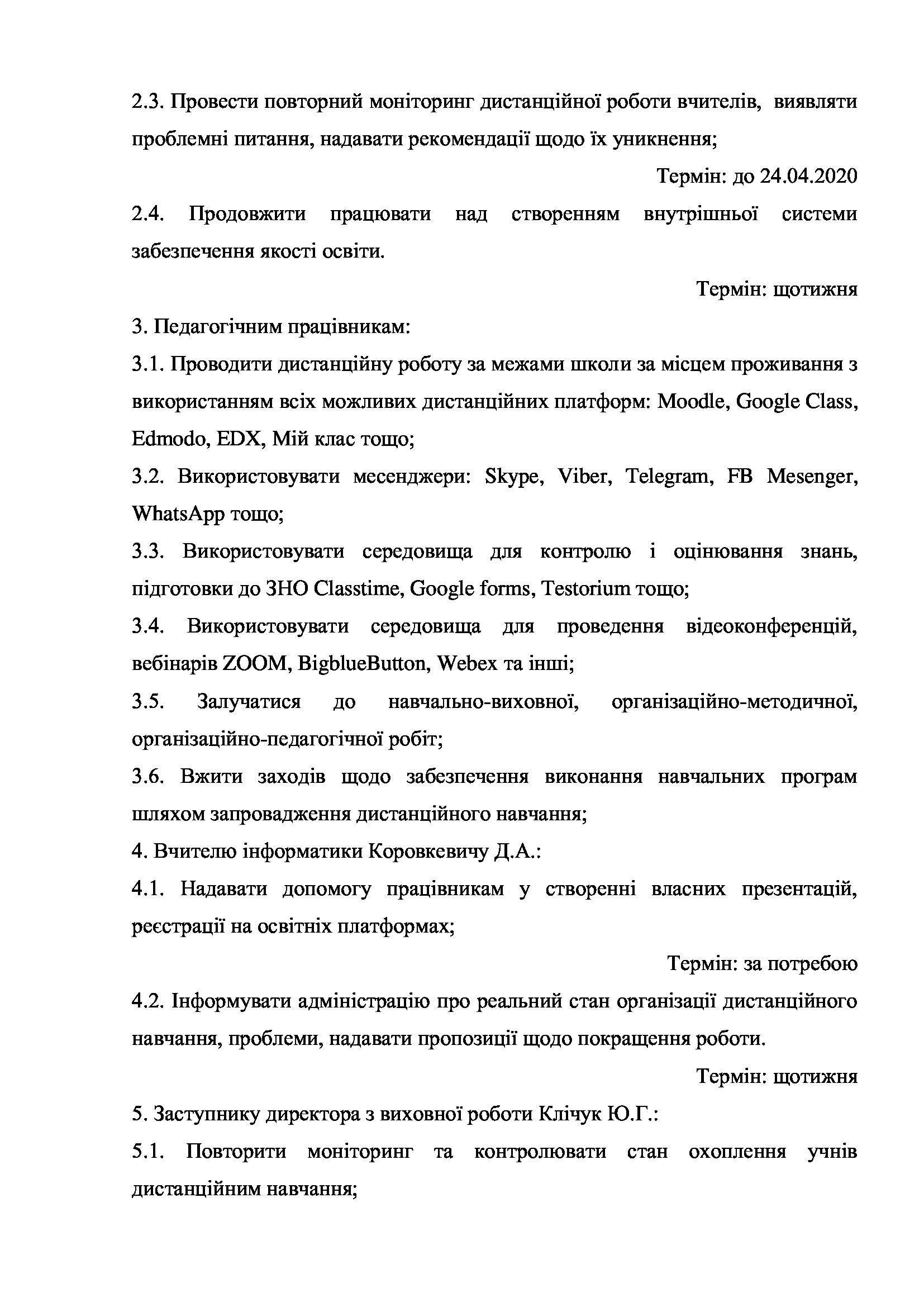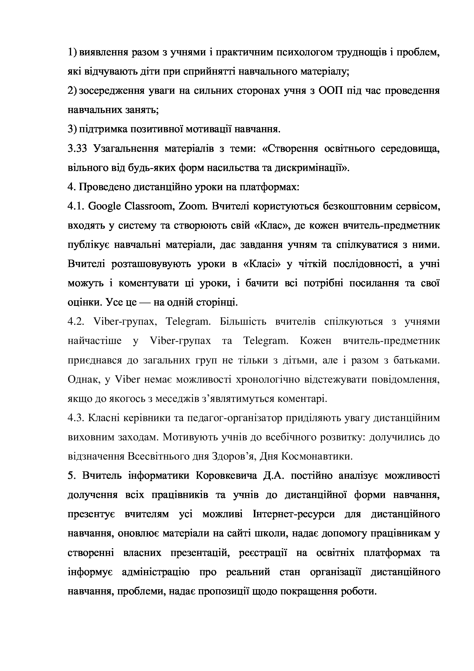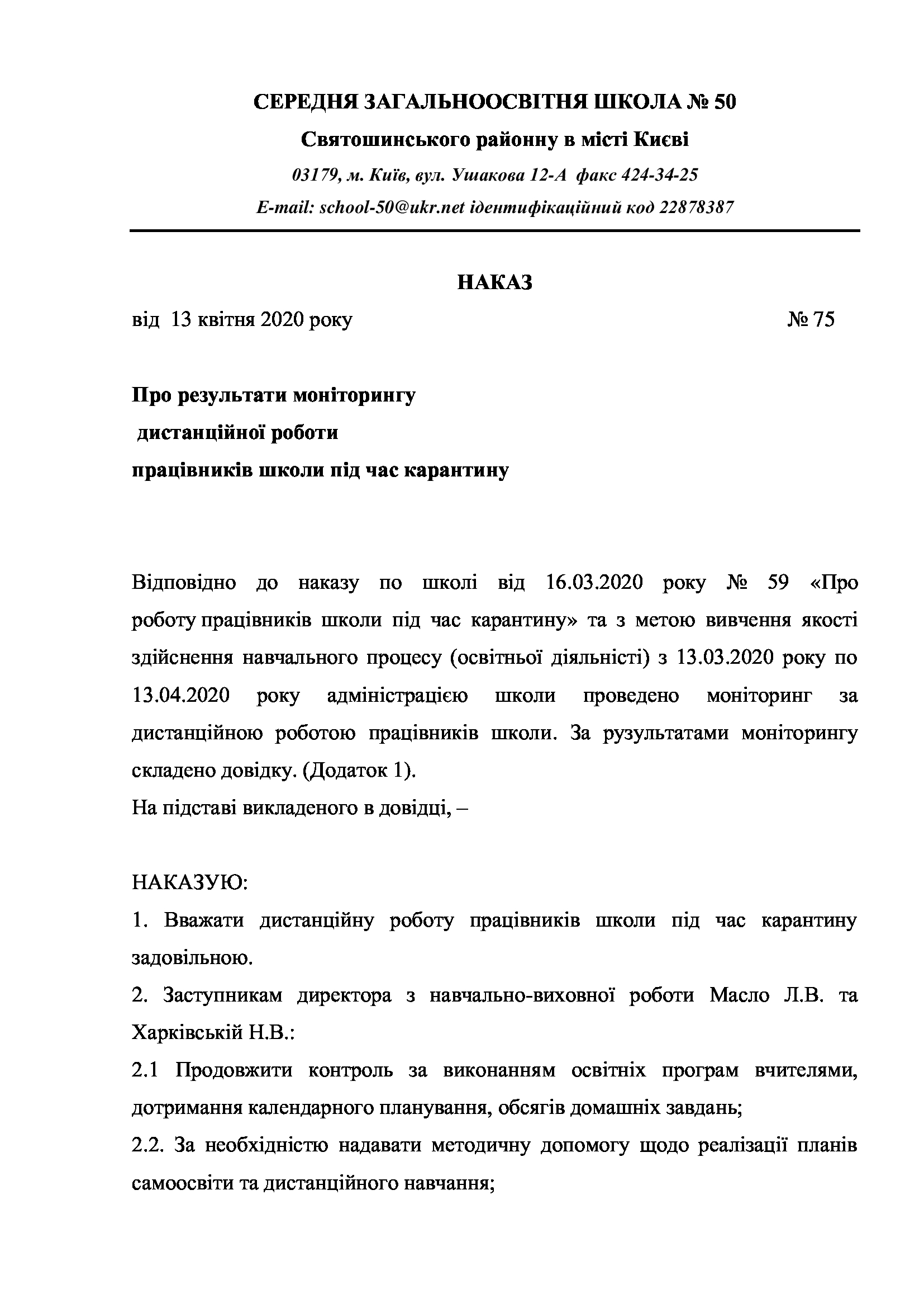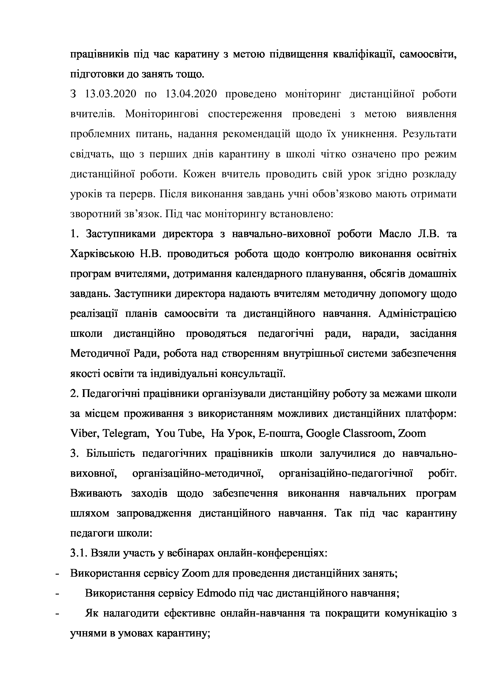 Результати моніторингу дистанційної роботи працівників школи під час карантину