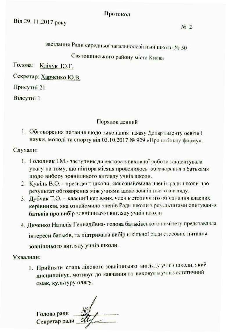 Рішення Ради школи щодо виконання наказу «Про шкільну форму»