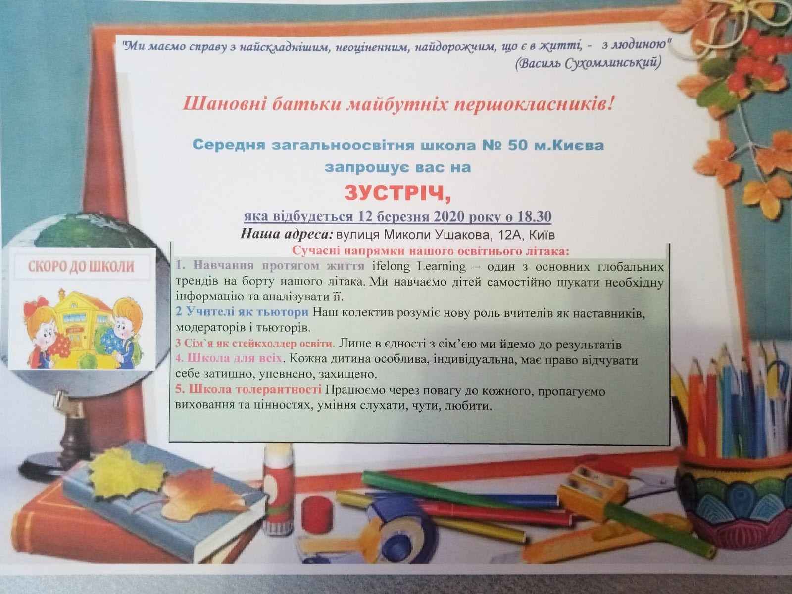 Шановні батьки майбутніх першокласників