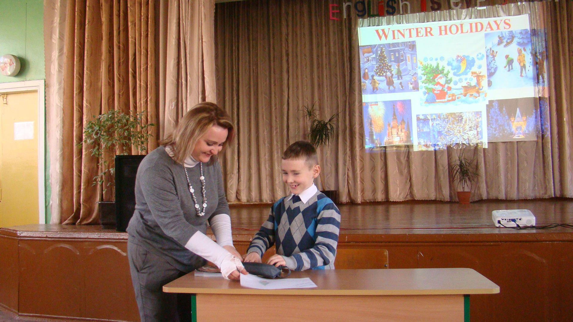 Дякуємо прекрасному смайлику Щебланіній Олені Олександрівні, чудовій Міс Вимові Снігур Ользі Миколаївні, неперевершеному Містеру Здоров’я Тарасенку Андрію Івановичу. Під час заходу «English is everywhere» Павлова Олена Володимирівна продемонструвала прекрасні знання з англійської мови та чудову вимову готуючи банановий сплінт зі своєю донькою. Крупіна Олена Юріївна, мама і заступник директора з НВР та її син зірвали шквал позитивних емоцій у глядачів своєю акторською грою.