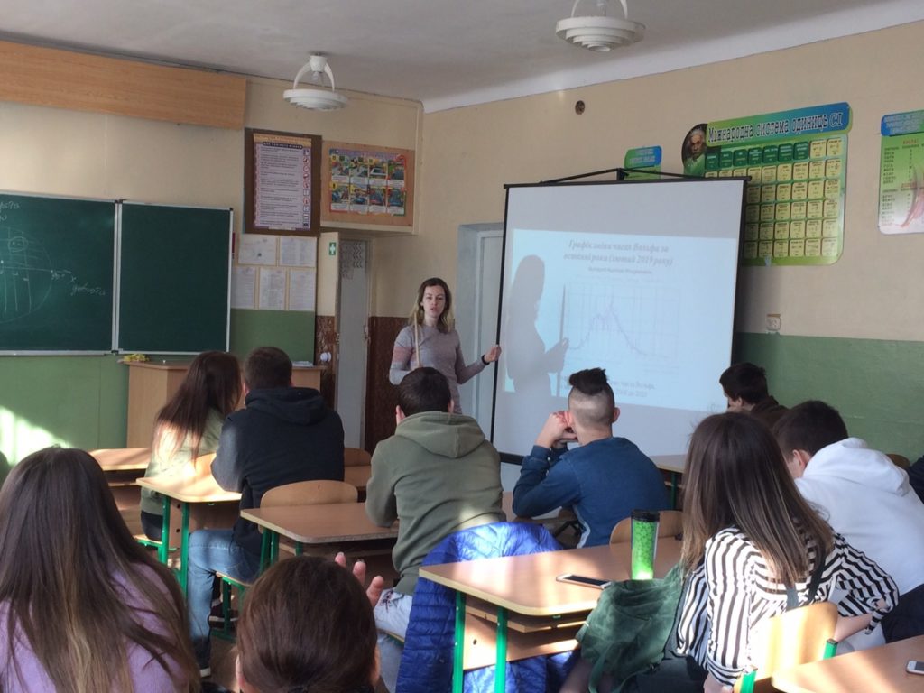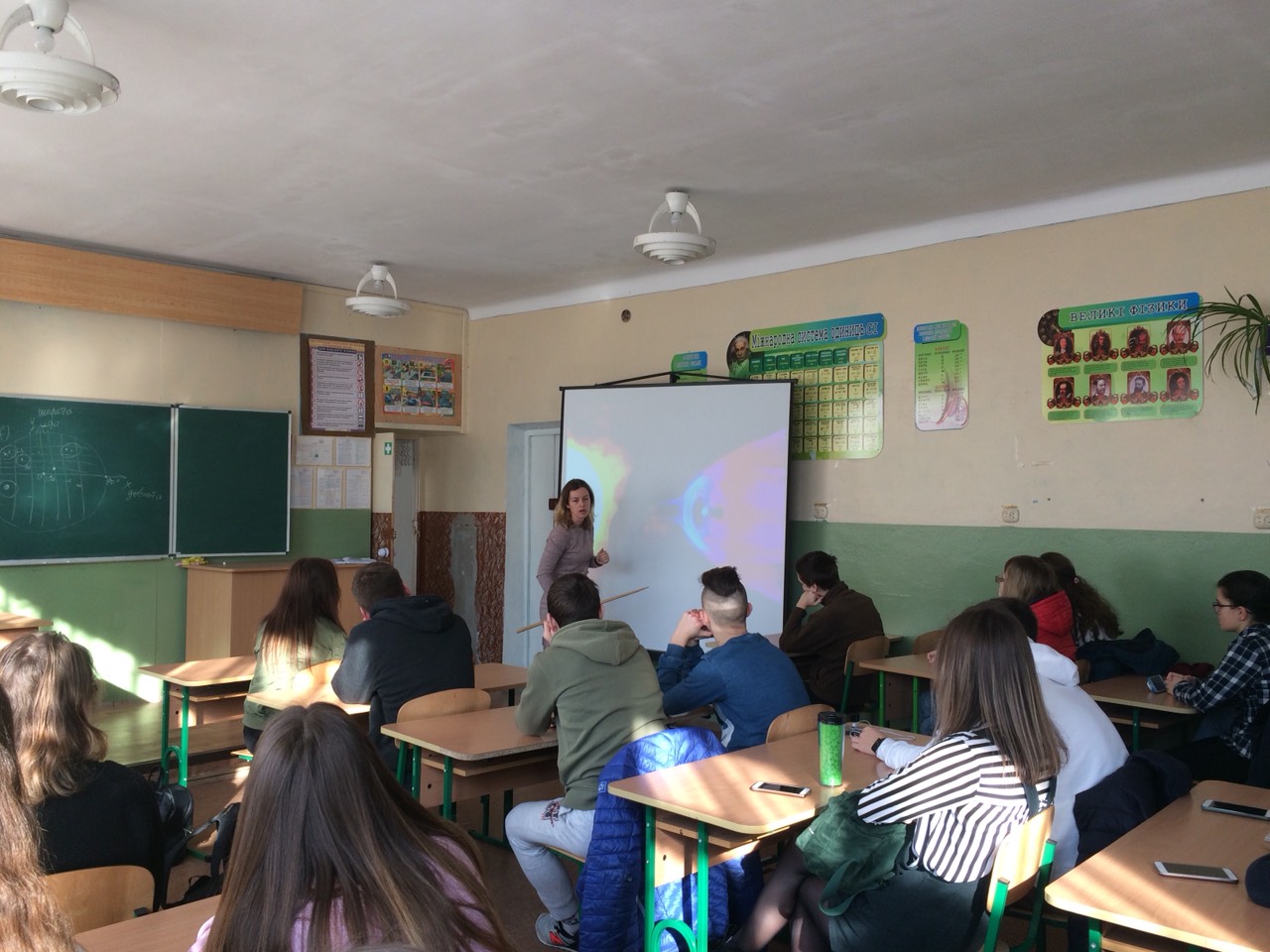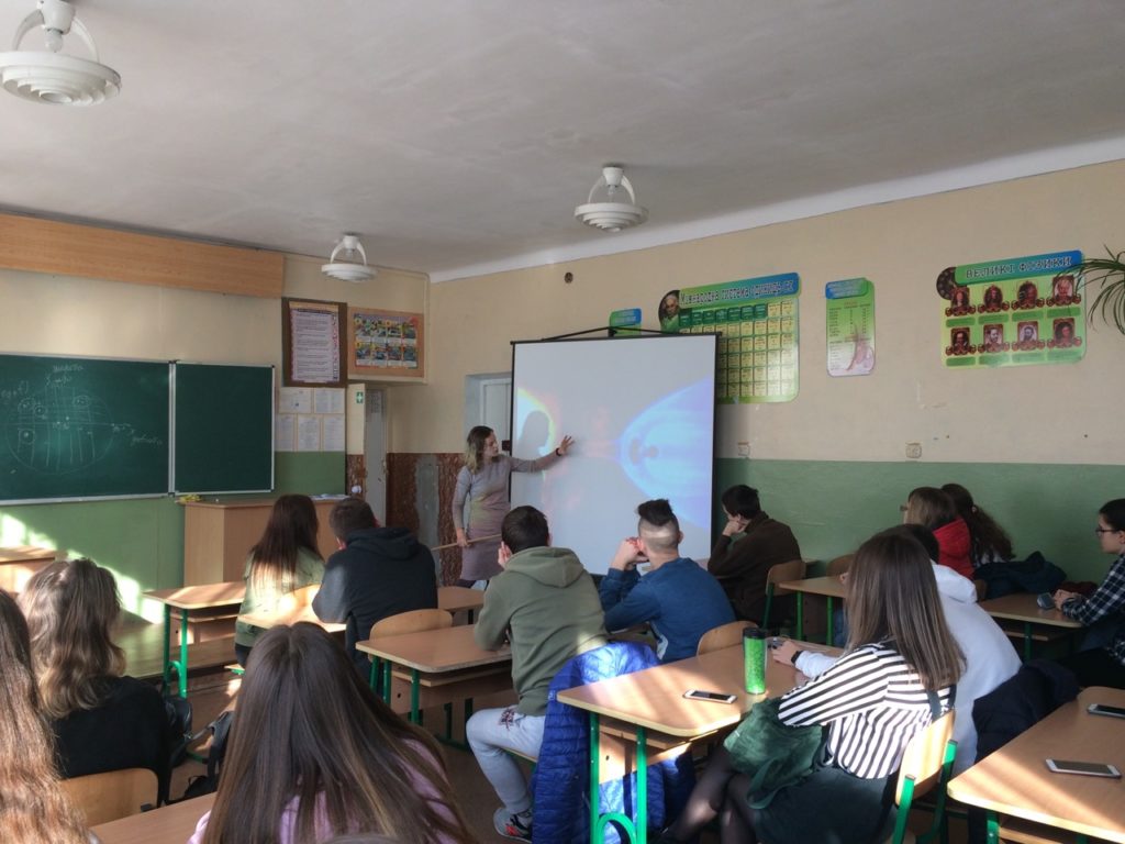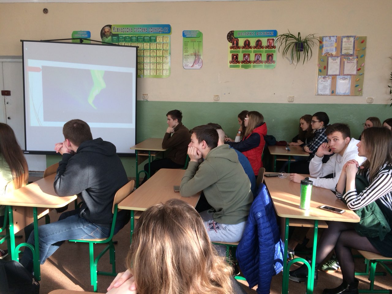 Відбулась зустріч із кандидатом падагогічних наук, доцентом кафедри теоретичної фізики та астрономії, представником Фізико -математичного факультету Національного педагогічного університету імені М.П. Драгоманова Кириленко Оленою Іванівною. Лекція відбулась 15.03.2019 року для учнів 10-11х класів, на тему: «Визначення Сонячної активності з використанням Інтернет -ресурсів».