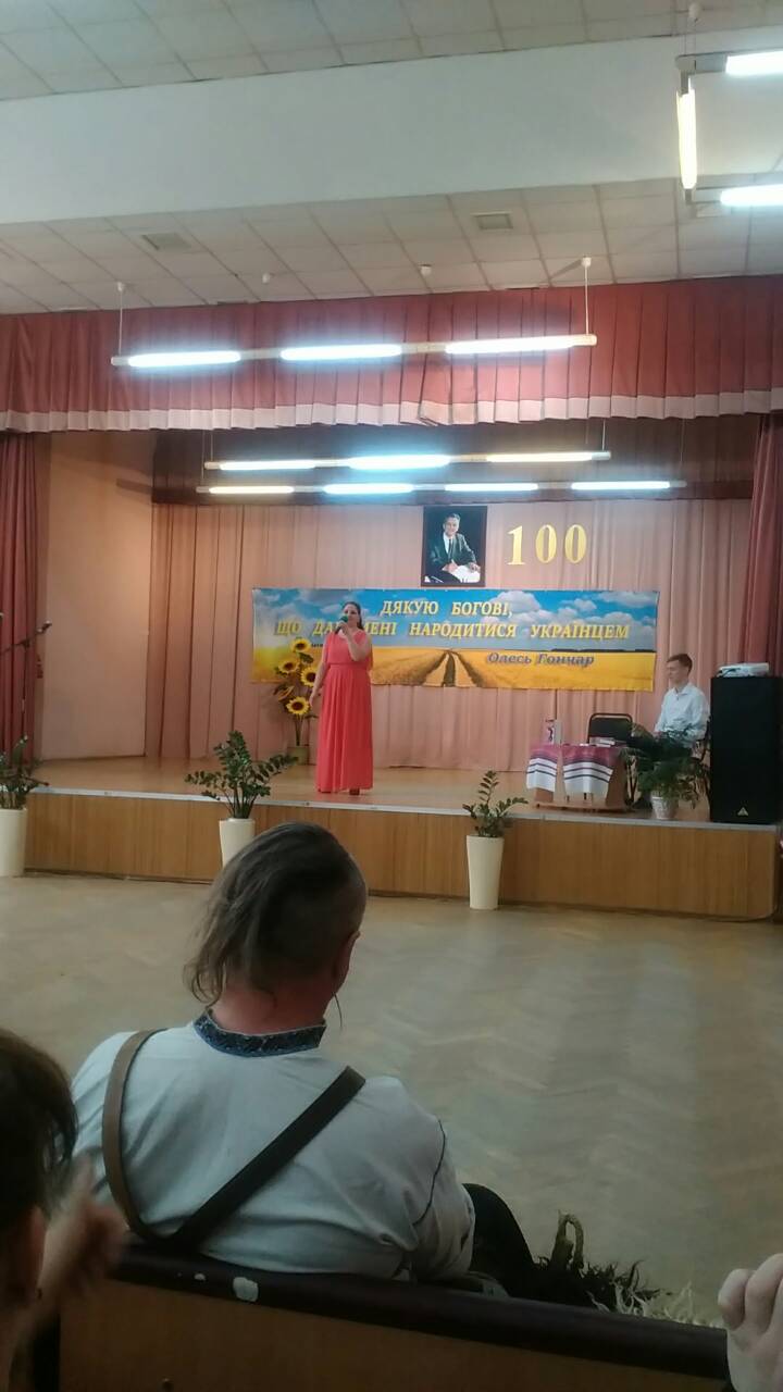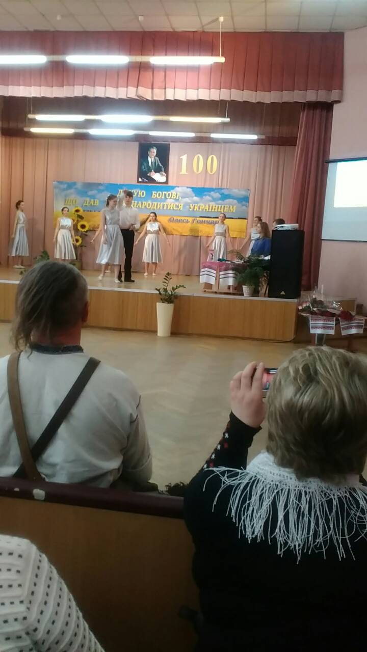 Скільки б не пройшло весен і зим без Олеся Терентійовича Гончара, час не зітре пам’яті про великого сина великої родини, вірного правнука Кобзаря, про улюбленця українського народу. Тепер тільки з портрета дивляться на нас вишневою карістю очі, але ж однак зігріває він нас своєю посмішкою, щирим поглядом, незабутніми зустрічами із його героями. Такими словами розпочалося святкування 100-річчя видатного письменника Олеся Гончара, що відбулося 18 квітня у СЗШ №76.