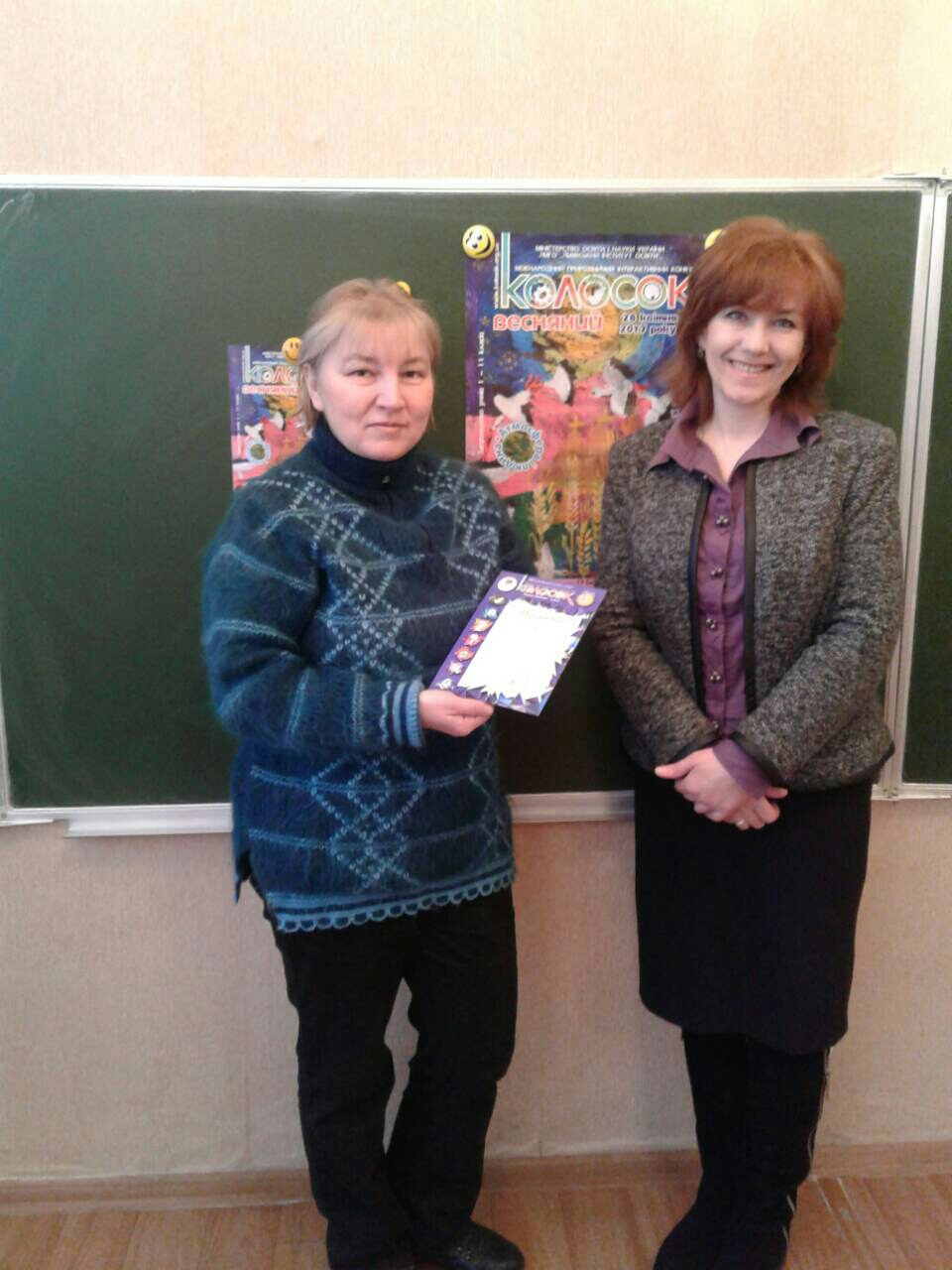 Учитель 1-Б класу Васенко Тетяна Володимирівна отримала подяку за багаторічну співпрацю з редакцією науково-популярного природничого журналу для дітей «Колосок».