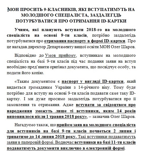 Прийом дітей до 1-х класів у 2023-2024 н.р.