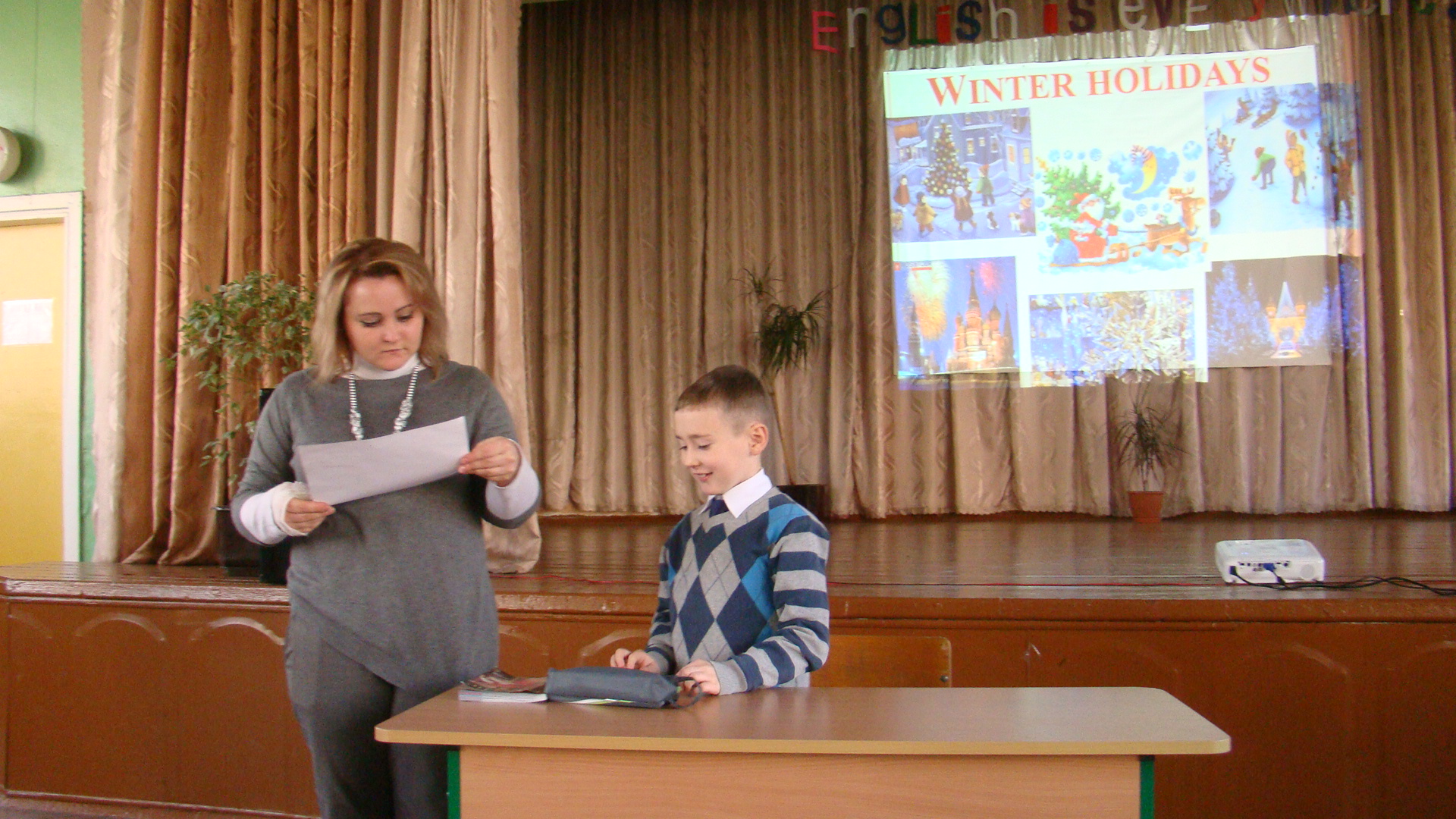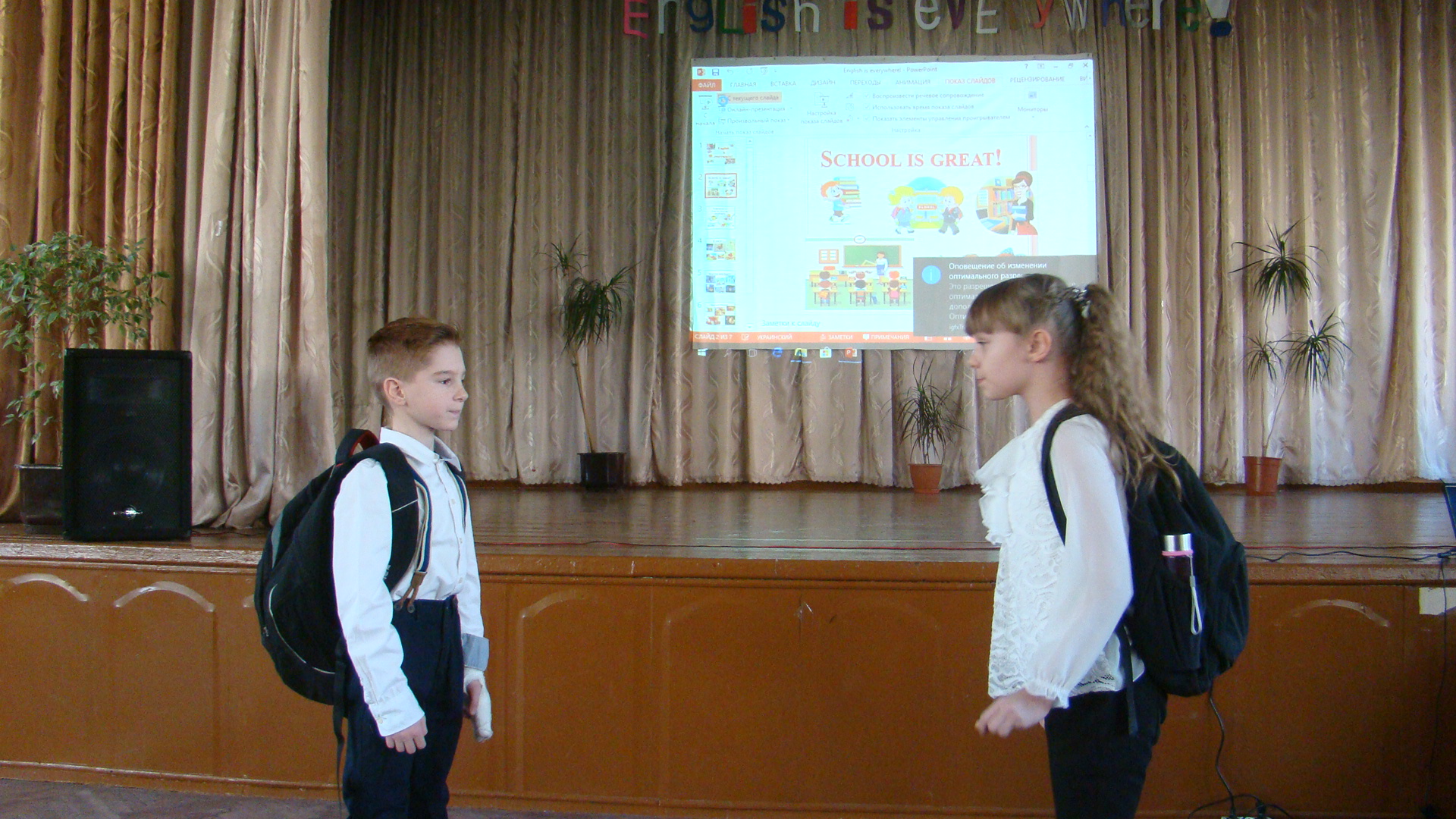 Нещодавно у школі №50 відбувся захід під назвою “English is everywhere”, який організувала і провела вчитель англійської мови Харченко Юлія Вікторівна. Його метою було показати та розкрити таланти дітей, виховувати зацікавленість до вивчення іноземної мови й донести до глядачів: як важливо й корисно знати англійську, бо вона є повсюди в сучасному світі. Ось чому вихованці показали різні ситуації з повсякденного життя людей. Це було інтерв’ю з відомим спортсменом, майстер-клас від кондитера, відео-екскурсія по школі, написання листа Санта Клаусу. А ще діти співали ліричні та запальні пісні, їхні танці то тривожили душу, то розслабляли. Глядачі отримали колосальне задоволення від декламації віршів. Усіх переповнювали позитивні емоції, а за це слід подякувати Саліщевій Дар’ї, Кукіль Владі, Берко Івану, Ткаченко Єлизаветі, Черняєвій Ользі, Черних Максиму, Ковальчуку Данилу (учням 10-А класу), Семененко Нікіті, Подолянко Крістіні, Борисовій Лілії, Стецюрі Ростиславу, Павловій Валерії, Барбарській Аліні, Сергієнко Кароліні, Голяк Карині, Хабібуліній Ріні, Бабенко Владиславі (учням 5-Б класу), Горай Анастасії (учениці 6-Б класу), Крупіну Нікіті (учню 2-А класу); батькам – Павловій О.В. та Крупіній О.Ю. Завдяки Вам це свято набуло естетично-красивих барв і вирізнялося чудовими знаннями англійської мови та застосуванням цих знань на практиці.