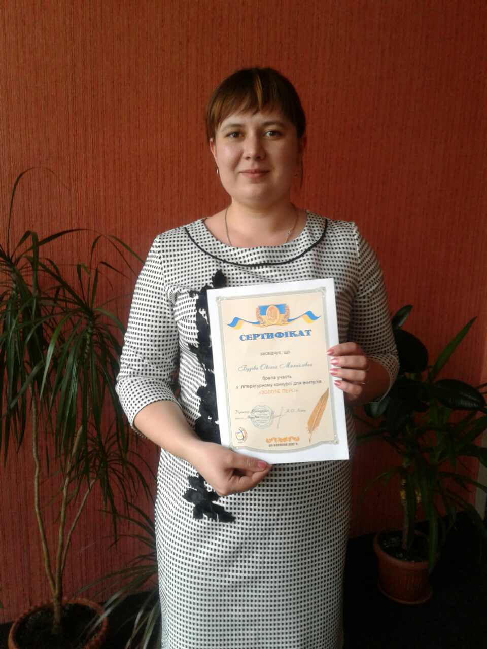 9 березня 2017 року вчитель географії та економіки Будова Оксана Михайлівна взяла участь в конкурсі творчих вчителів «Золоте перо» з написання есе на тему: «Значущість професії вчителя». За активну участь і творчий підхід Оксана Михайлівна нагороджена сертифікатом та цінними подарунками. Щиро вітаємо!!! Творчих успіхів!!!